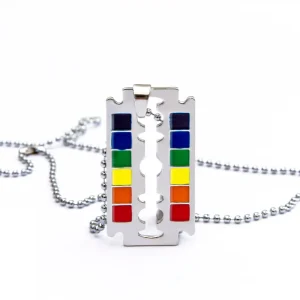 Collier pendentif rasoir à lame de sécurité arc-en-ciel LGBT
