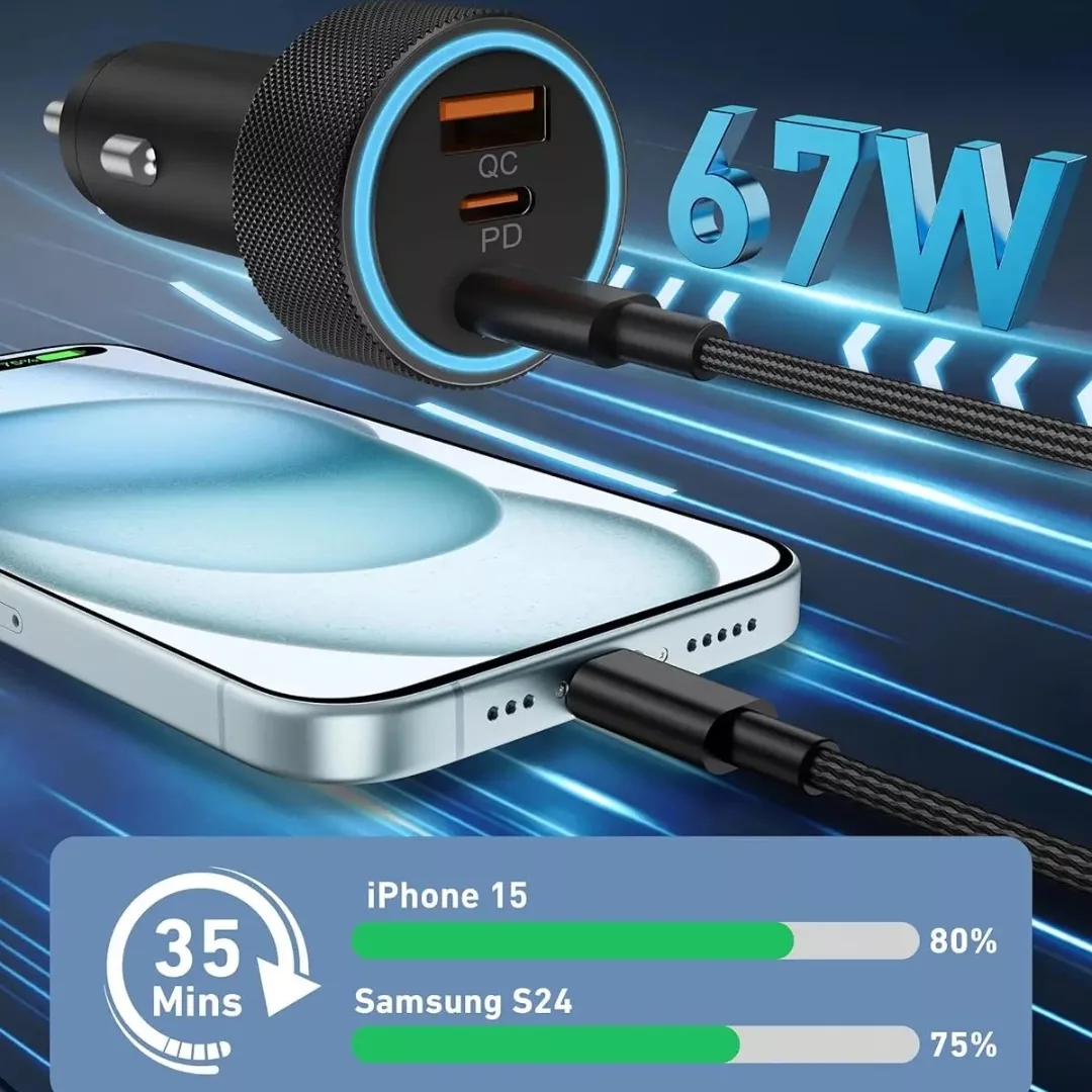 Compact et léger, il s’intègre parfaitement dans votre voiture, offrant une solution de chargement élégante et fonctionnelle, adaptée à tous les types de smartphones et de tablettes.