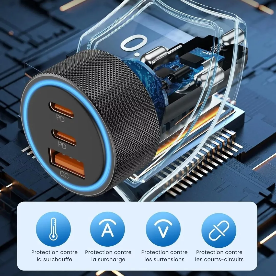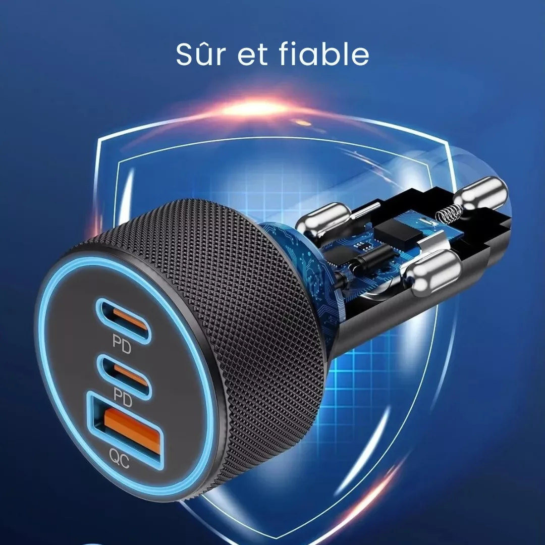 - Parfait pour rester connecté lors de longs trajets, sans compromettre la sécurité de vos appareils.