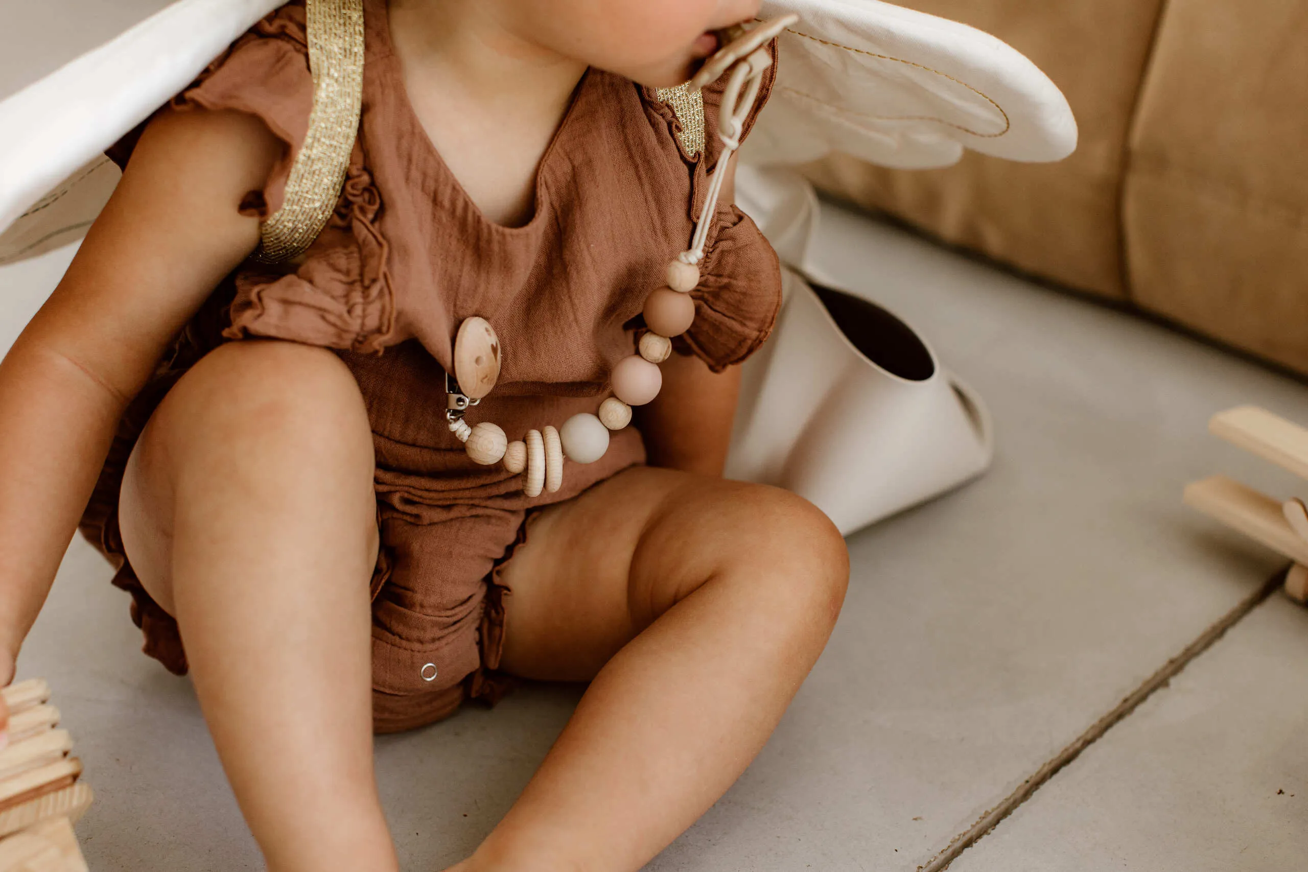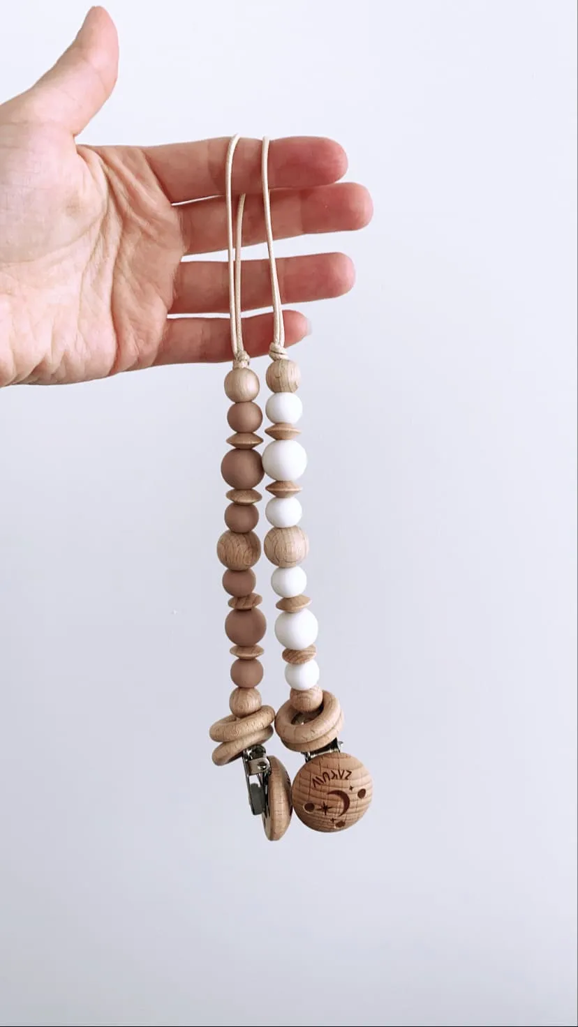 – Attache tétine avec perles en silicone alimentaire & bois naturel