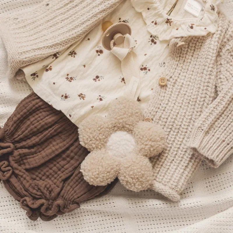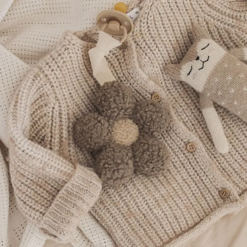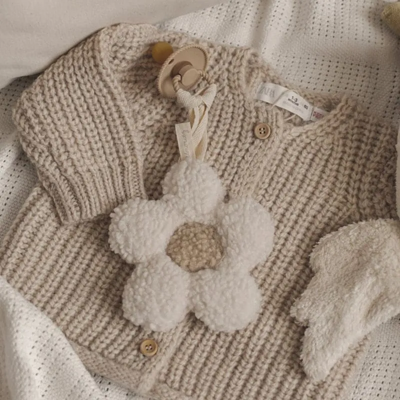 On craque pour cet adorable attache tétine fleur, toute douce grâce à sa matière sherpa !