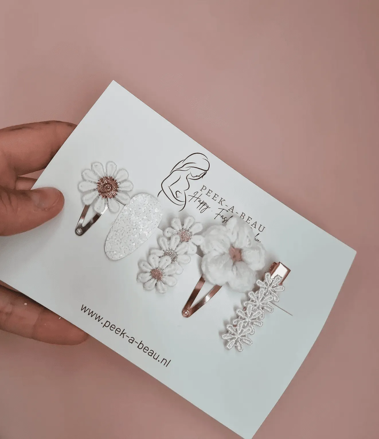 On craque pour ce magnifique set de 5 barrettes filles aux couleurs neutres, avec ces fleurs et ces paillettes !