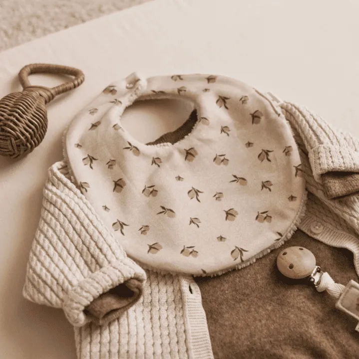 Il se ferme par deux liens en coton pour s’adapter parfaitement au cou de bébé et ne pas risquer de tacher les vêtements !
