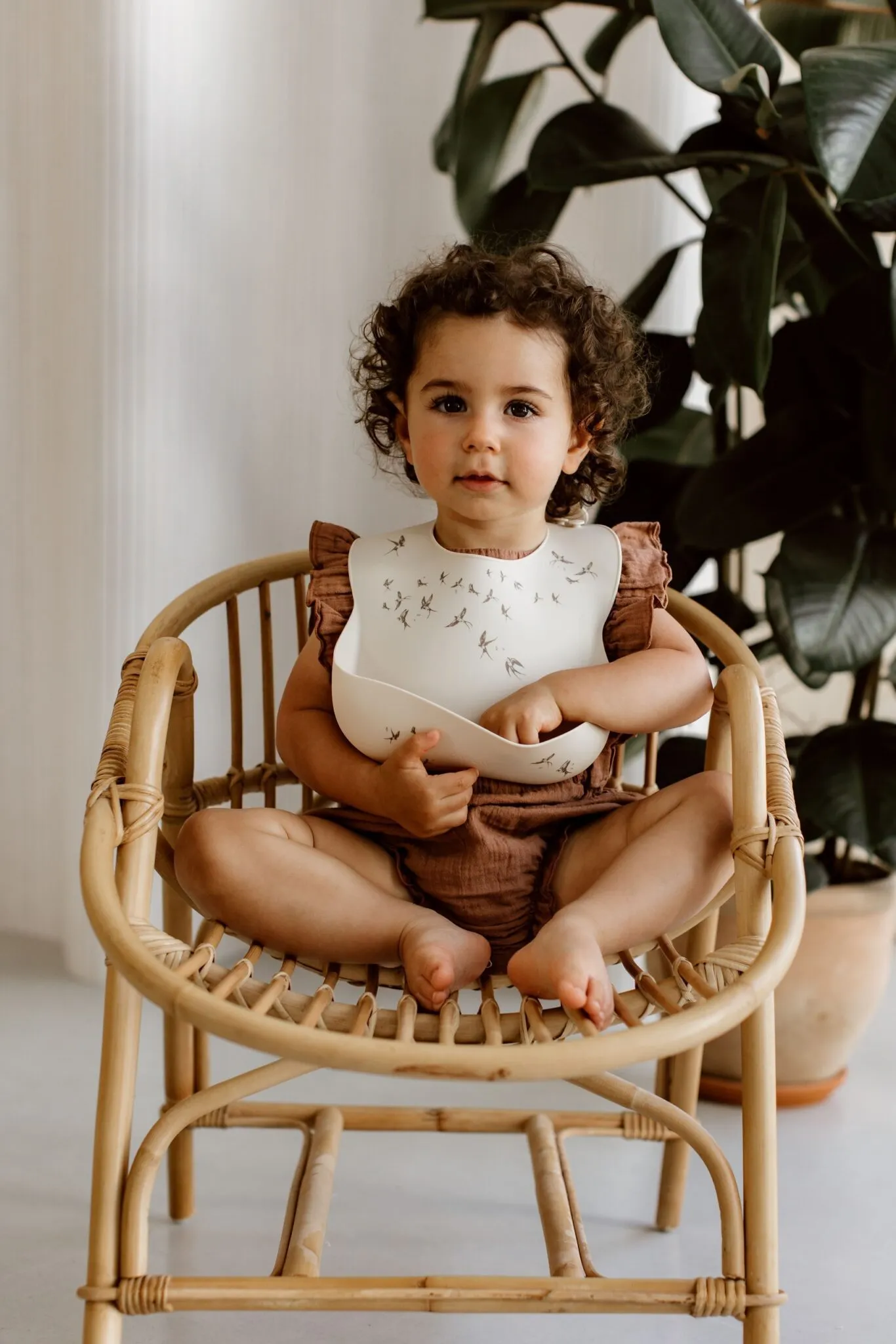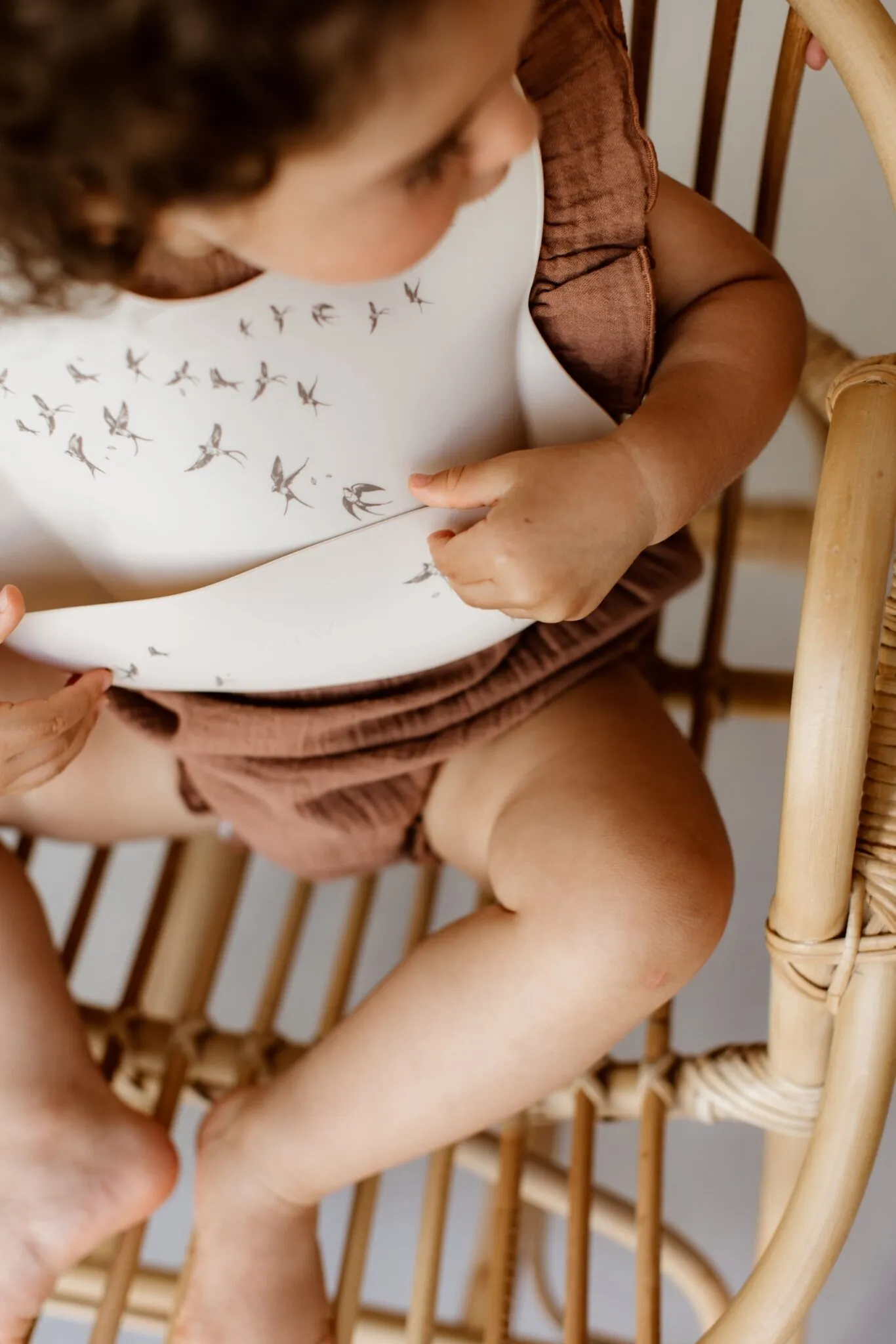 Le joli bavoir en silicone “Hirondelles” – de chez Zakuw – est idéal pour garder les vêtements de votre bébé propres durant ses repas !
