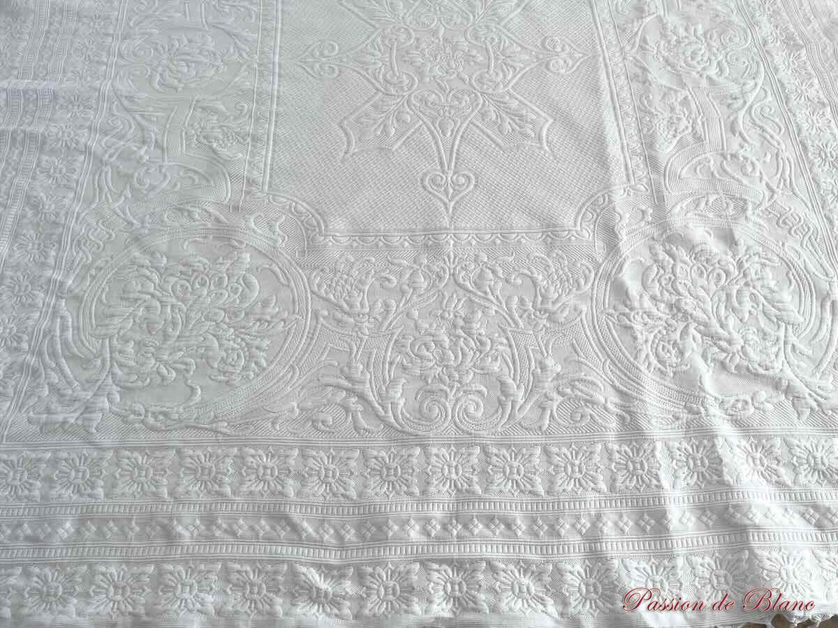 En piqué Marseillais au relief imposant laissant voir de beaux motifs avec des paniers fleuris.