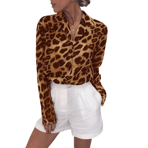 Profitez de notre offre spéciale et rafraîchissez votre style avec cette ravissante blouse vintage imprimé léopard, qui apportera une note de férocité sophistiquée à votre tenue du jour.