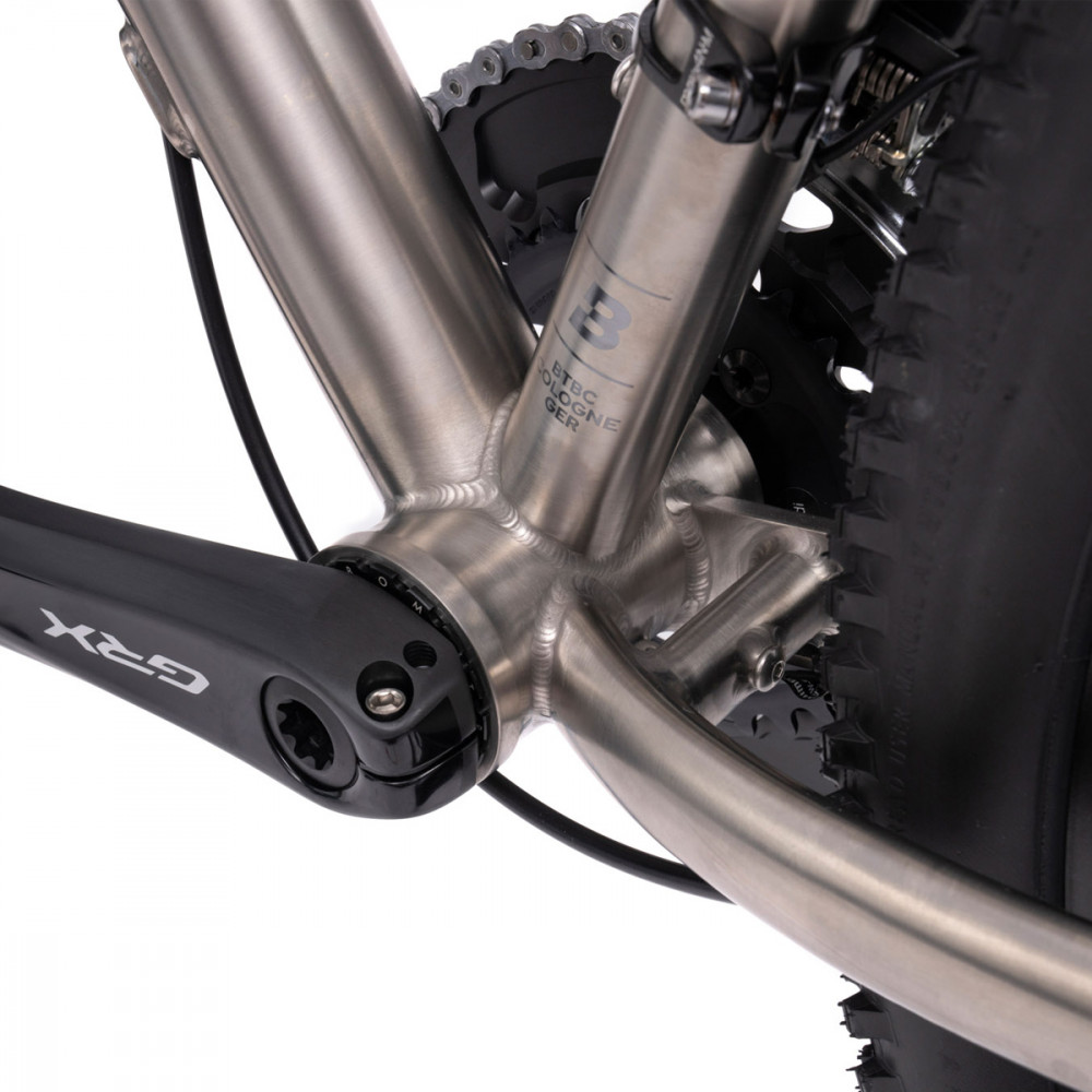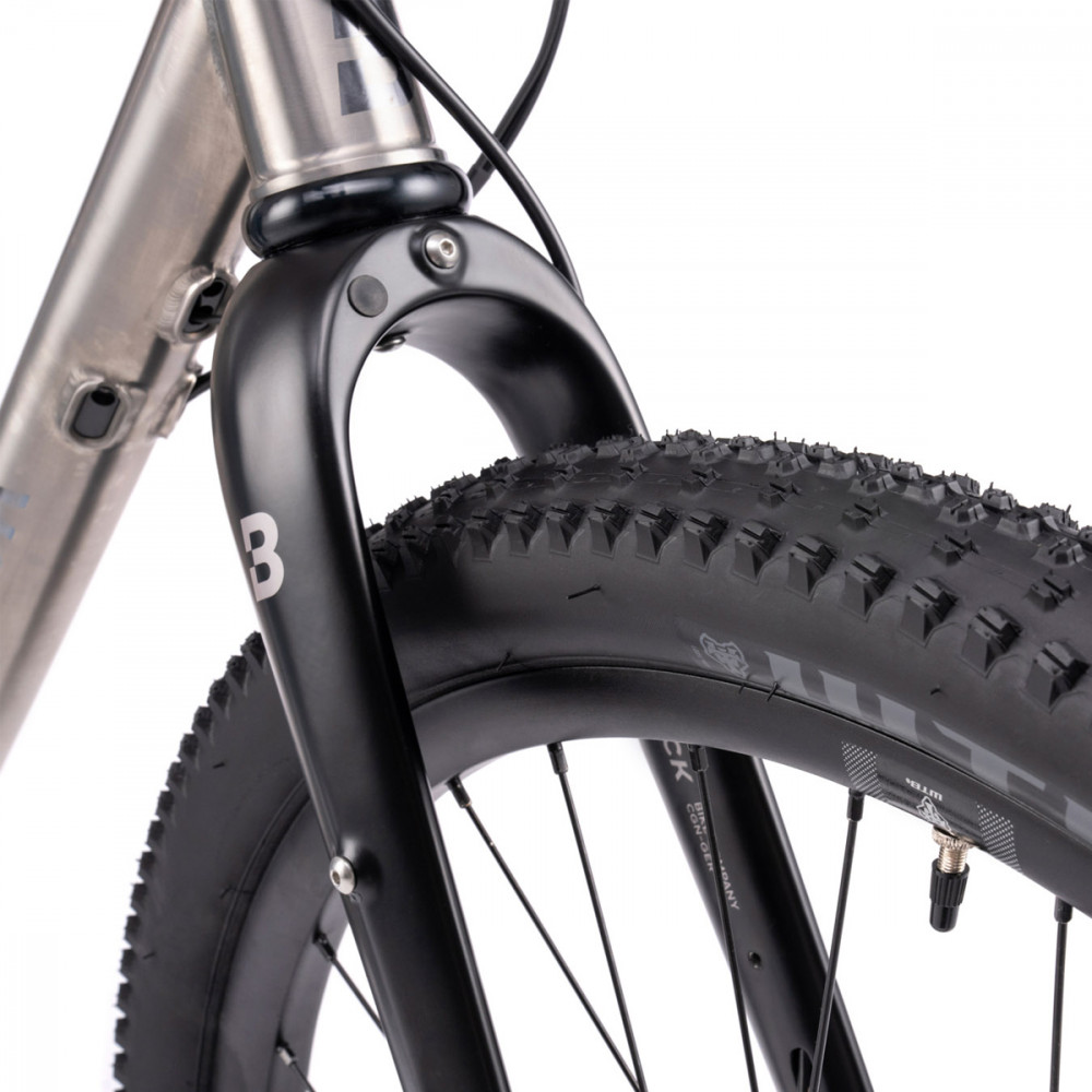 Le Bombtrack Hook Titane EXT Ti est fait de titane 3AI-2.5V, le matériau parfait pour un gravel. Le titane résiste comme rien d’autre et ne rouille pas. Il est léger, ne se raye pas quand vous mettez des sacs dessus, et il a cette réaction particulière quand vous poussez fort sur les pédales.