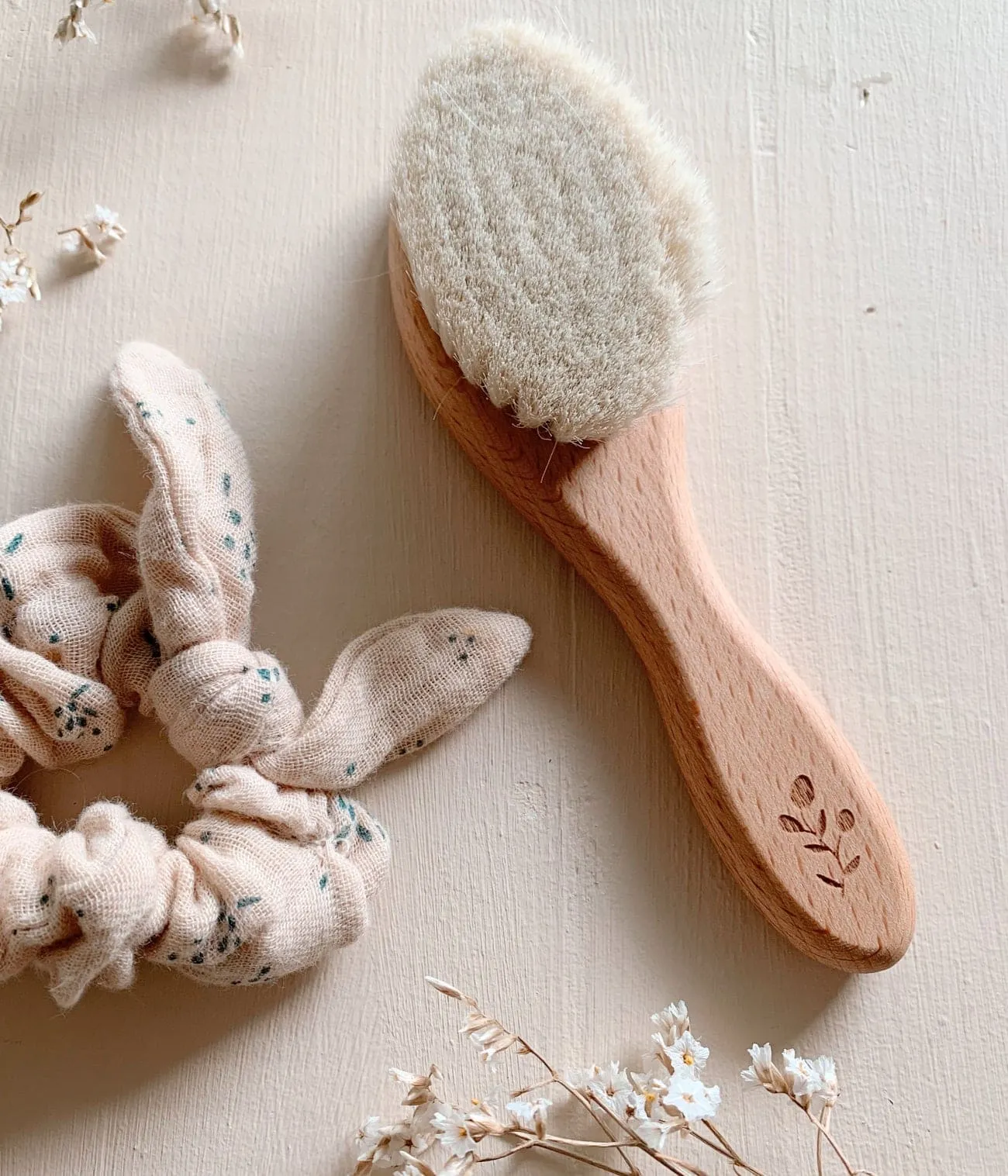 – Brosse bébé 100% bois de hêtre issu de forêts protégées et poils de chèvre