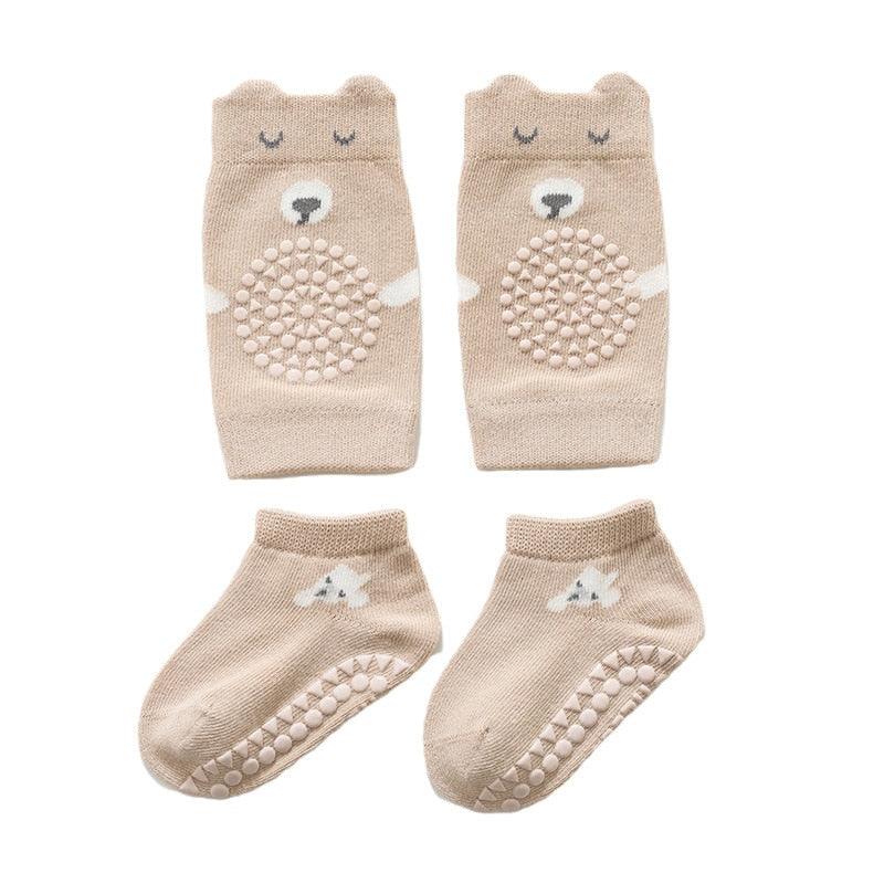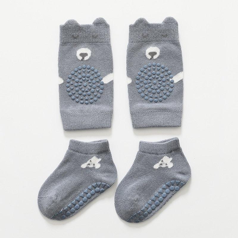 Votre bébé va adorer cette paire de chaussettes antidérapantes + genouillères pour pouvoir ramper, marcher et même sauter sans risque de glisser !