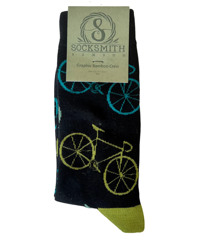 La paire de chaussettes pour homme Socksmith, thème bicyclette, est parfaite pour les amateurs de la petite reine.