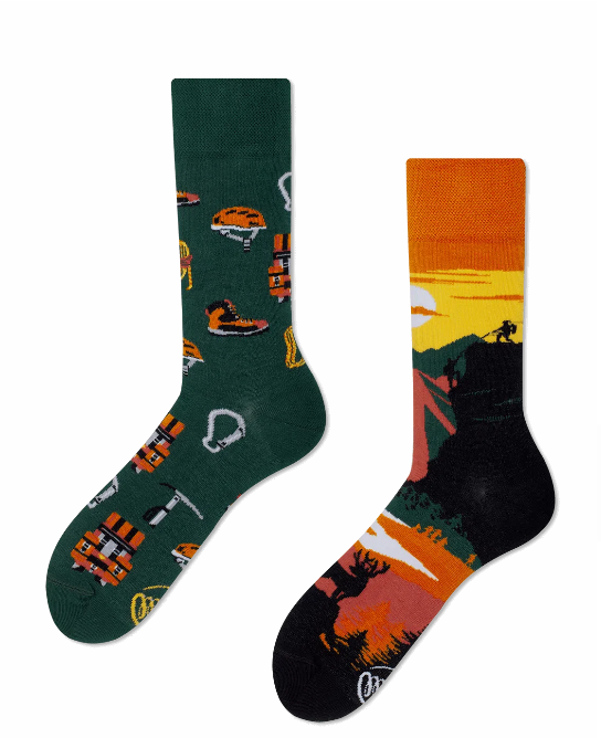 Les chaussettes Many Mornings aux motifs asymétriques sont parfaites pour les amoureux de la montagne.