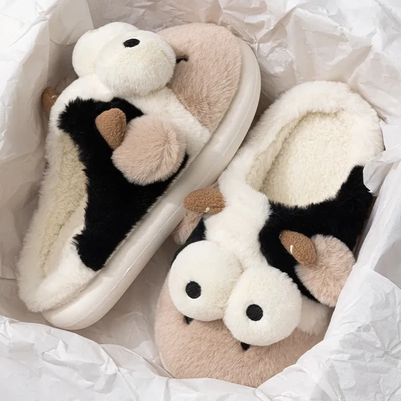 Le chausson animaux vache avec des gros yeux