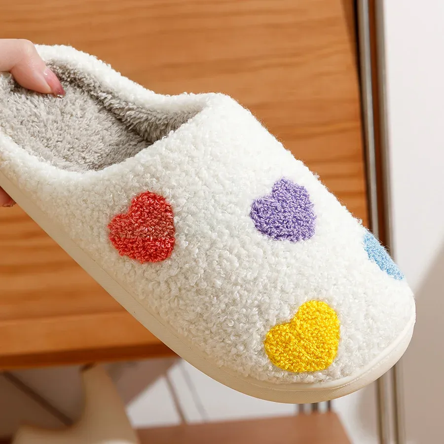 Découvrez le confort ultime avec nos chaussons mules ornés de cœurs. Conçus pour apporter chaleur et tendresse à vos pieds, ces chaussons présentent un revêtement en moumoute chaude qui vous enveloppe de douceur. Les dessins de cœurs multicolores sur le dessus ajoutent une touche de gaieté et de style, rendant ces chaussons parfaits pour une utilisation à la maison tout en restant chic.