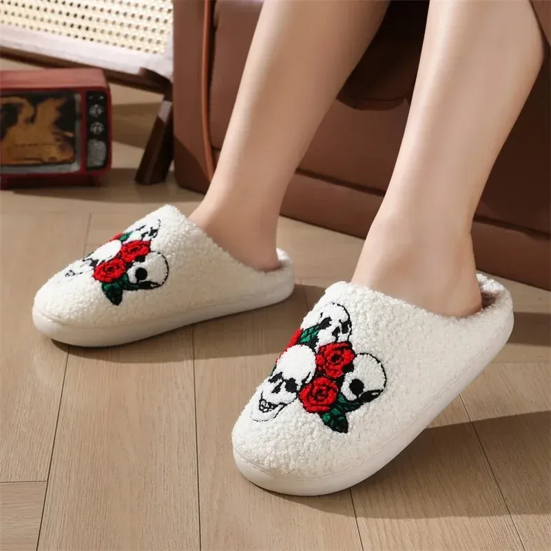 Les Chausson Mule Tête de Mort et Roses, le choix parfait pour un hiver cosy