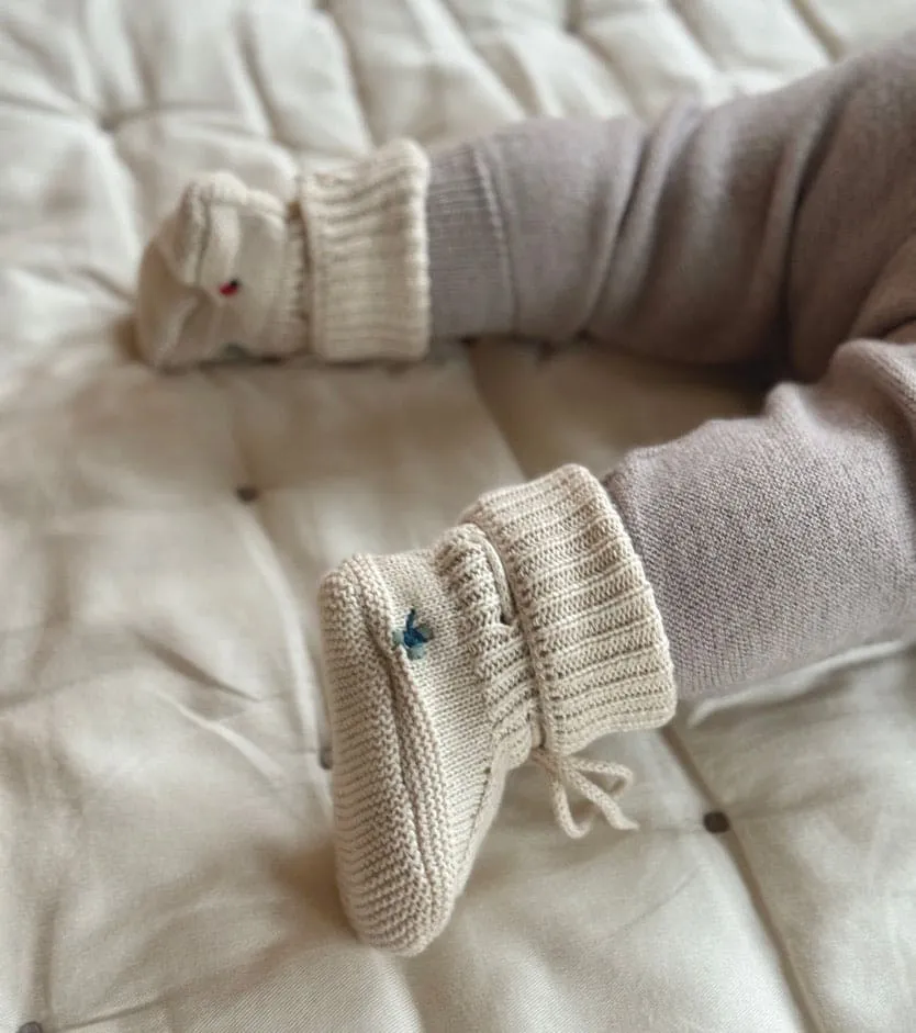 – Chaussons bébé 100% coton biologique certifié GOTS.