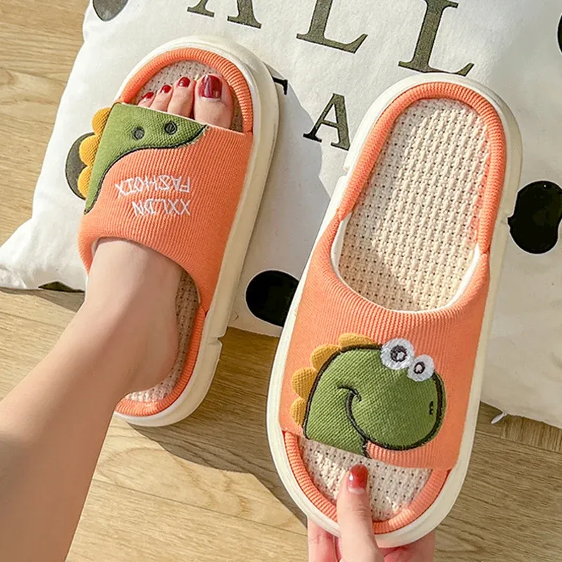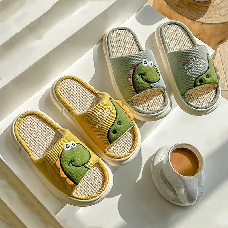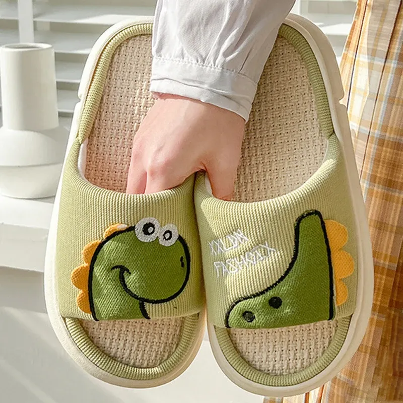 La paire de claquette dinosaure en lin pour femme et homme
