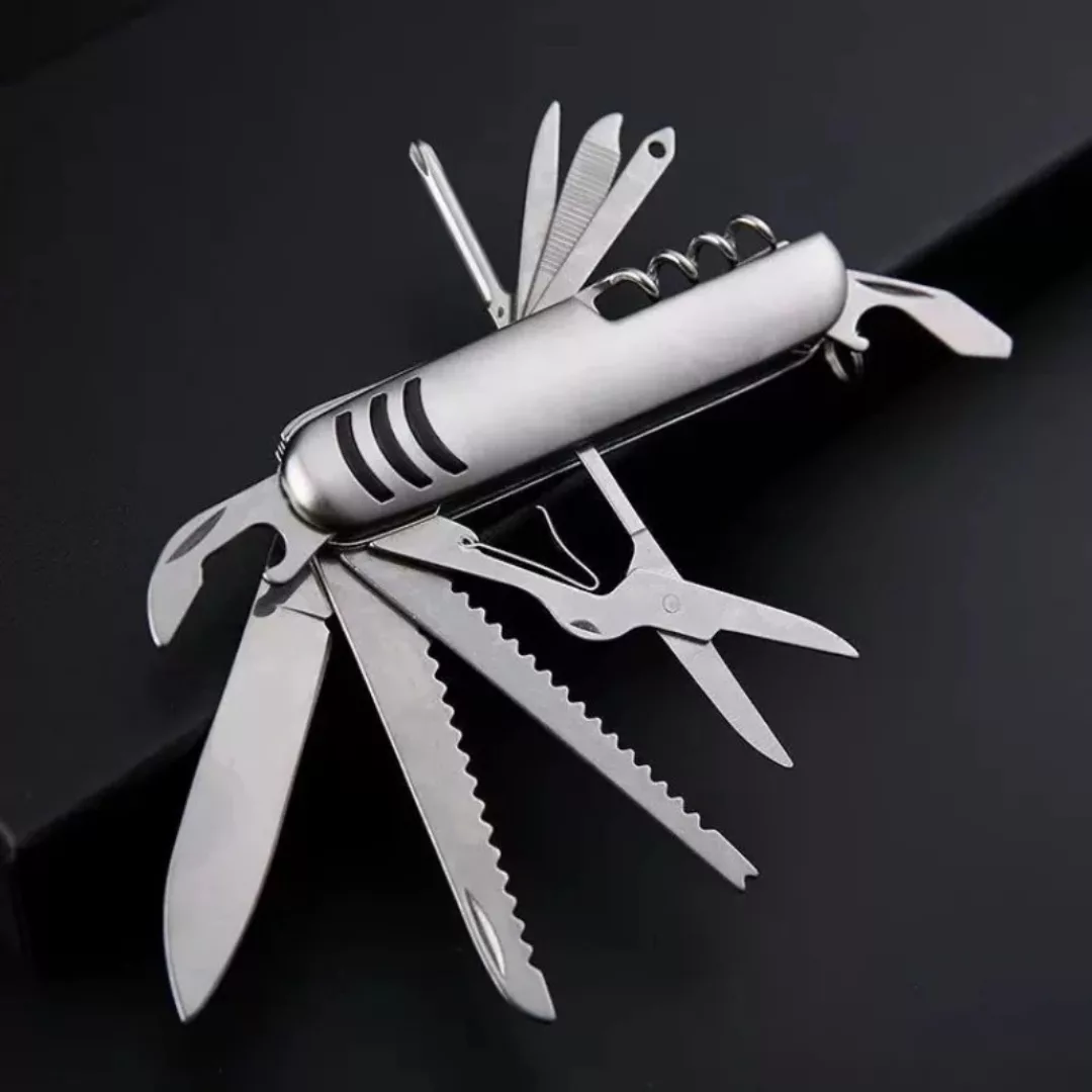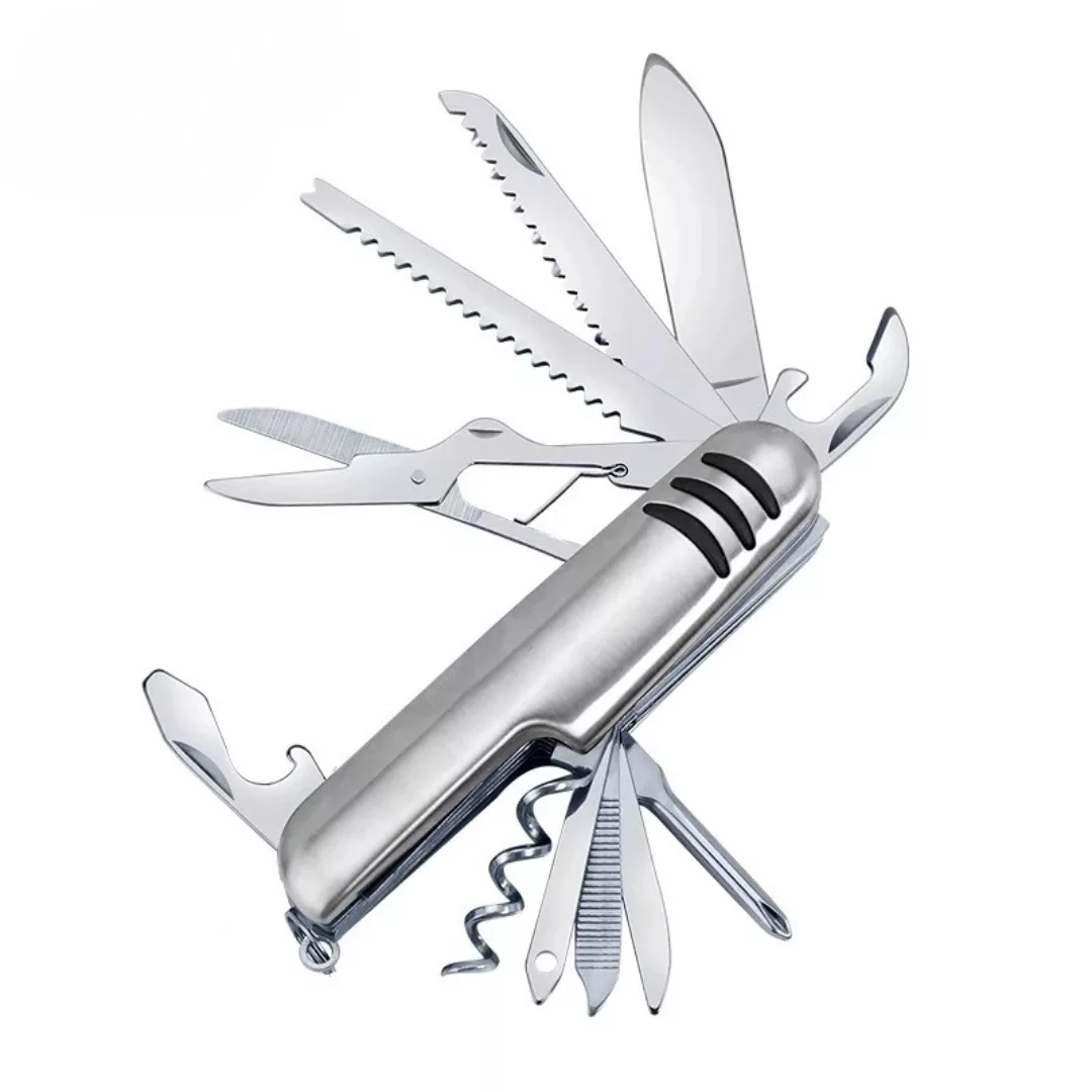 - Fonctions : Comprend une lame principale, un ouvre-boîte, un tournevis, et bien d’autres atouts pour une polyvalence maximale.