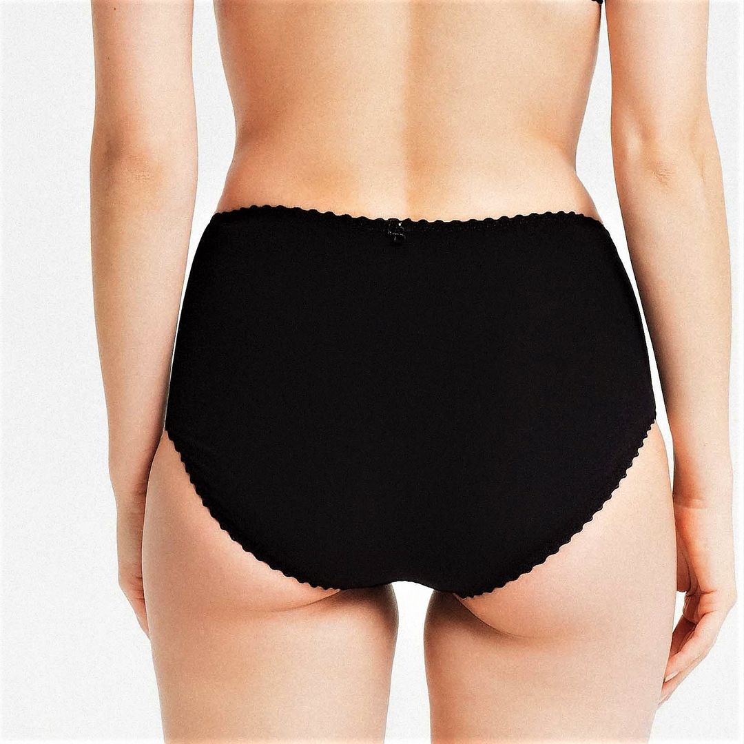 La culotte Elise Louisa Bracq possède une maille plissée opaque à l’avant. Sur les côtés, une broderie de feuilles aux reflets nacrés vient créer un jeu de transparence dévoilant subtilement la peau pour un look délicieusement rétro. Le tour de taille et les tours de cuisses élastiqués offrent une meilleure tenue et un confort parfait au quotidien.