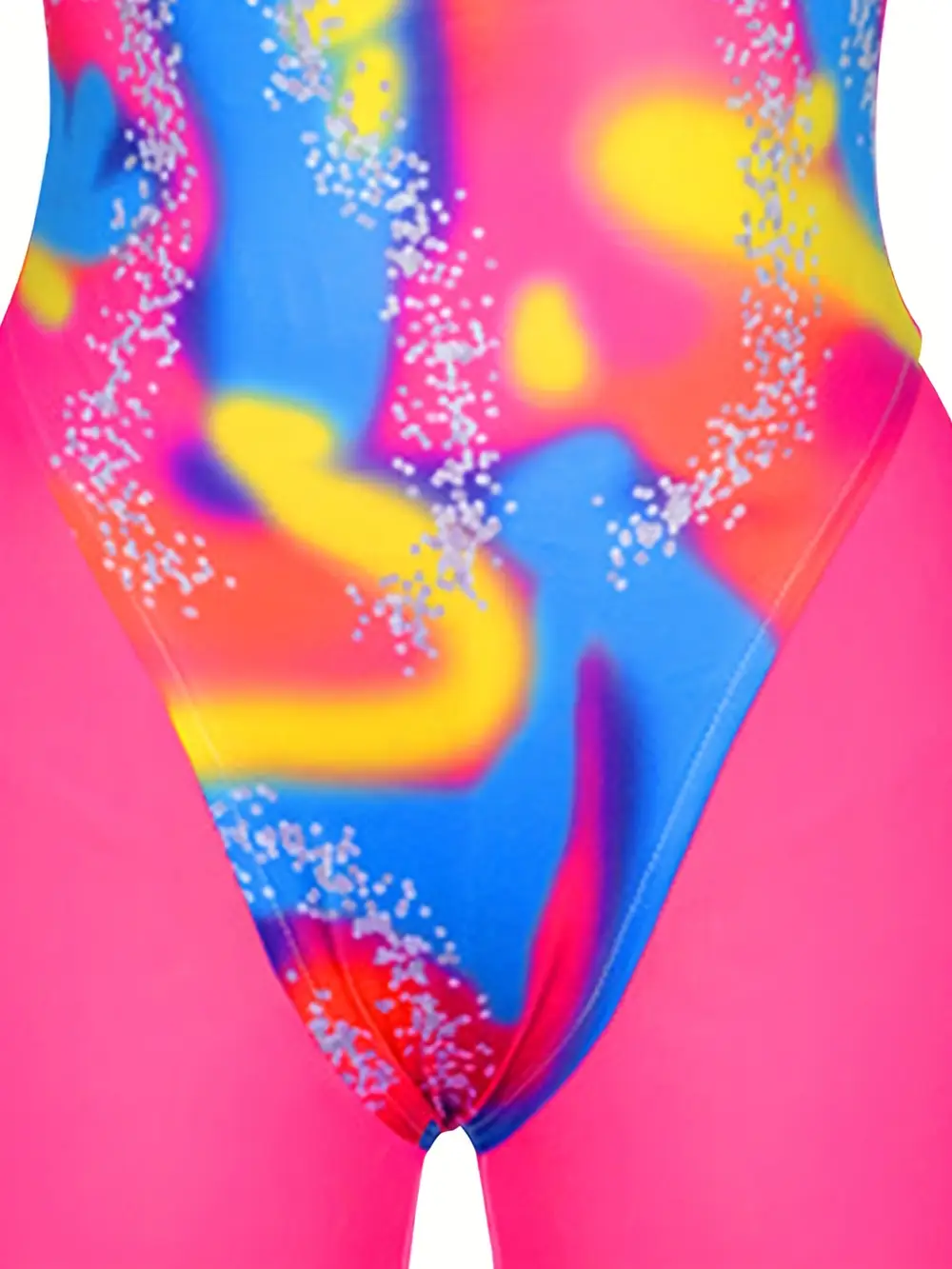- Les teintes fluo intenses et les matières synthétiques rappellent l’ambiance des pistes de danse disco et des clips de Madonna.