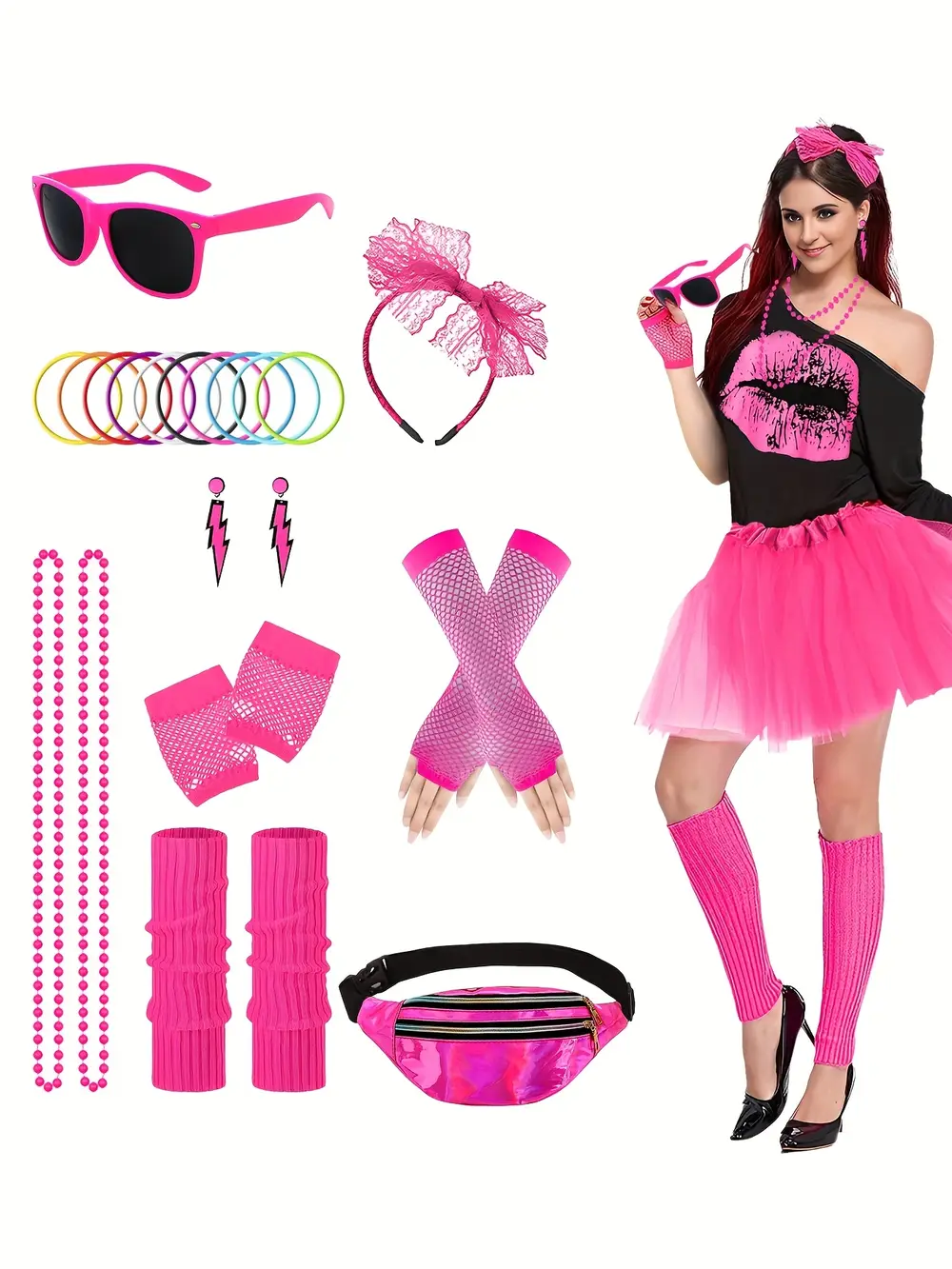 - Idéal pour créer un look disco femme avec tous les codes de l’époque : fluo, dentelle, tutu et accessoires vintage