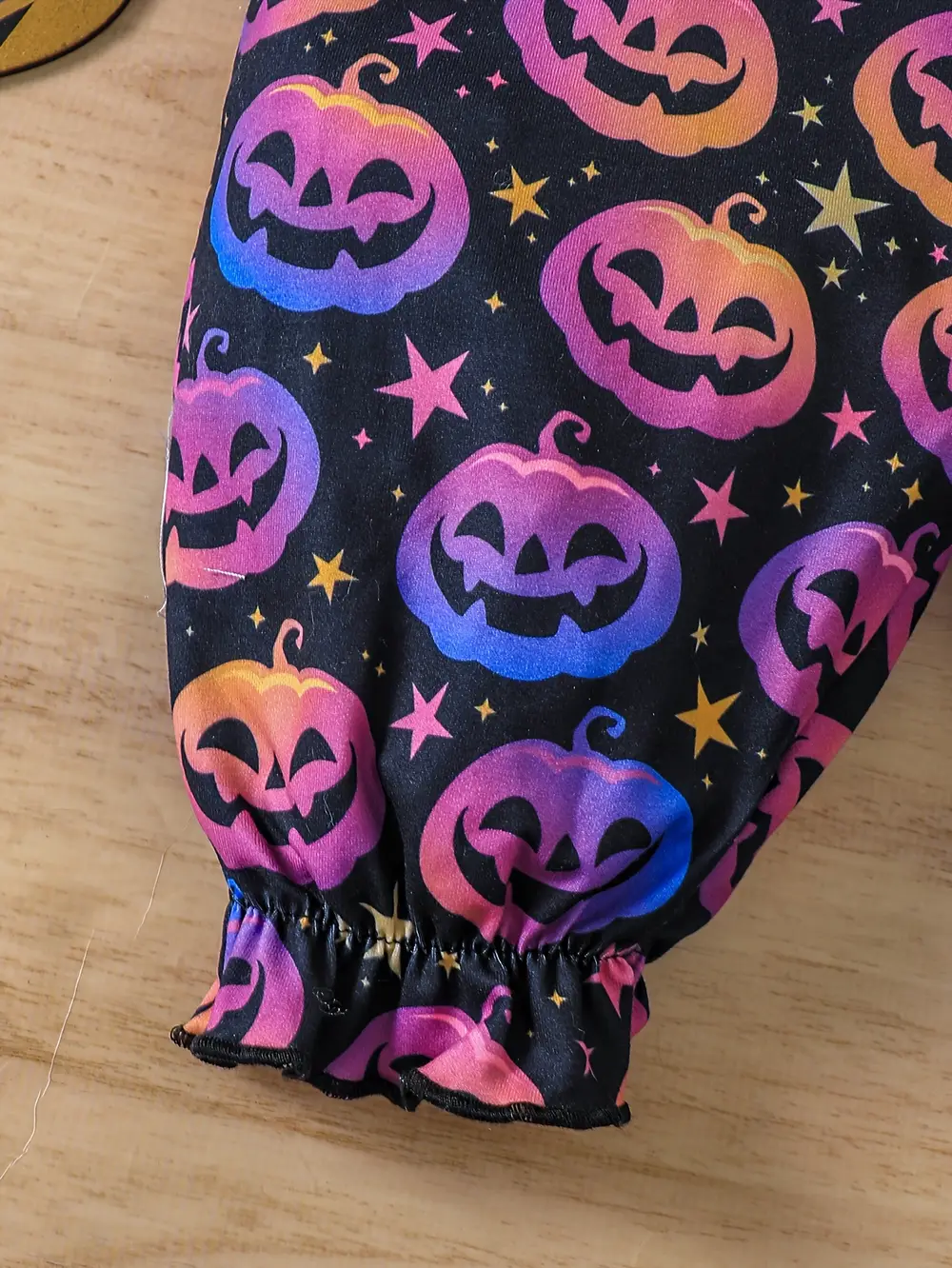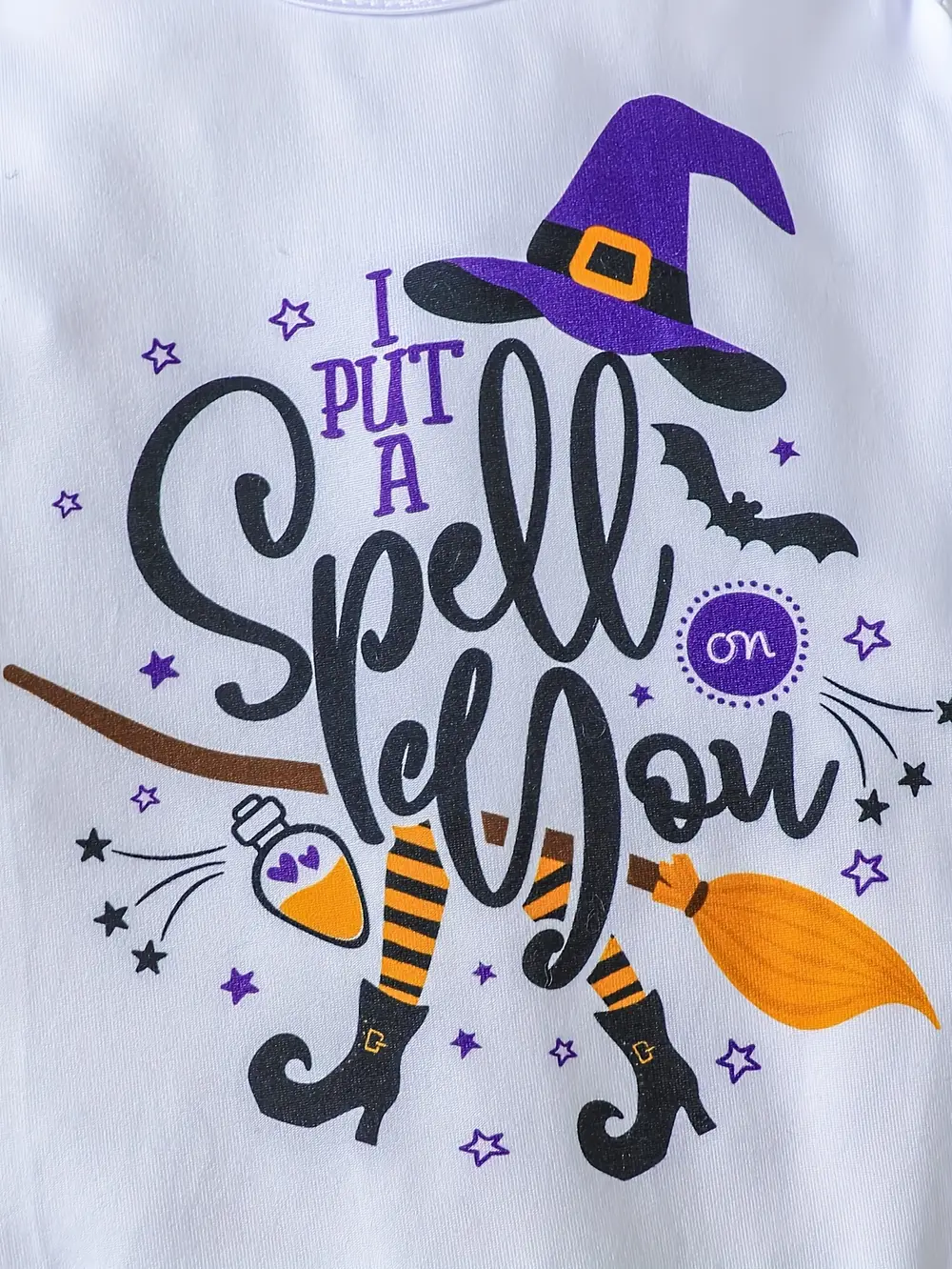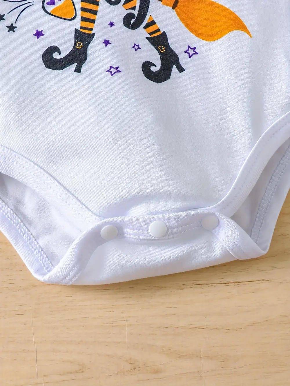 - Motifs imprimés citrouille et sorcière irrésistibles pour affirmer un style festif dès le berceau