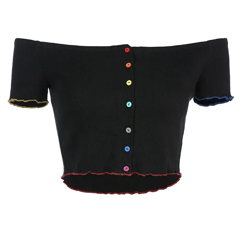 Séduisez avec subtilité grâce à ce gilet aux épaules dénudées et boutons arc-en-ciel, pièce maîtresse d’une mode audacieuse et féminine. Il est conçu pour les amatrices de tendance qui n’ont pas peur de marier confort et audace.