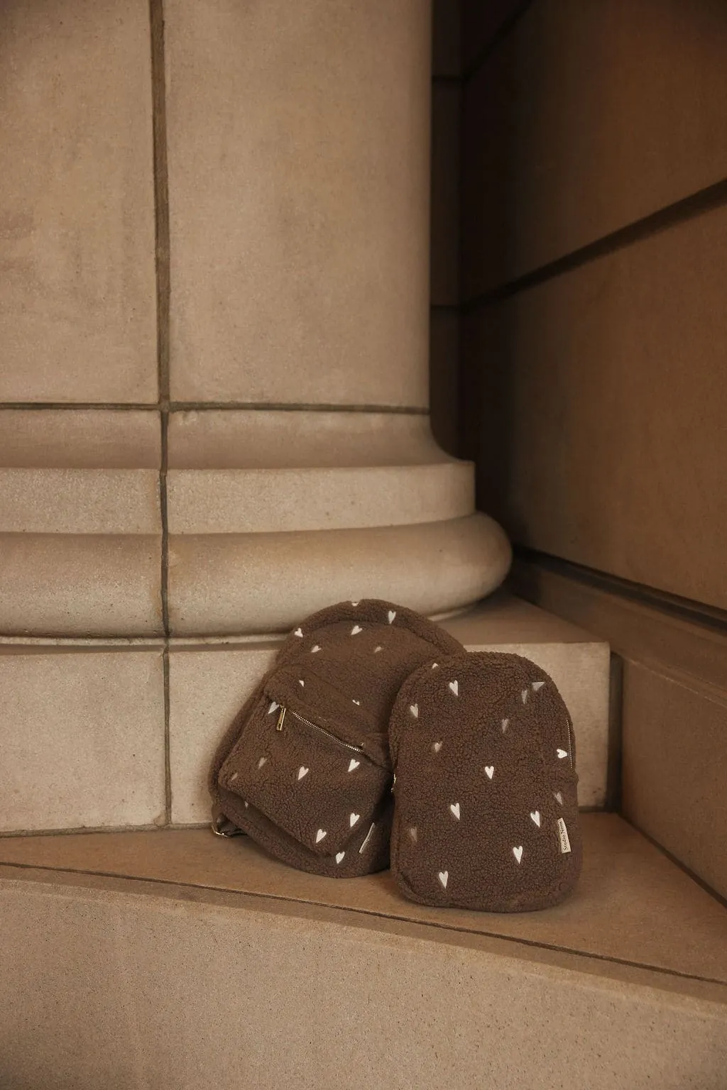 En sherpa marron avec des cœurs délicatement brodés qui rendent son design si spécial ! Pratique et léger et contient une poche sur l’avant pour ranger les petits objets de vos petits aventuriers !