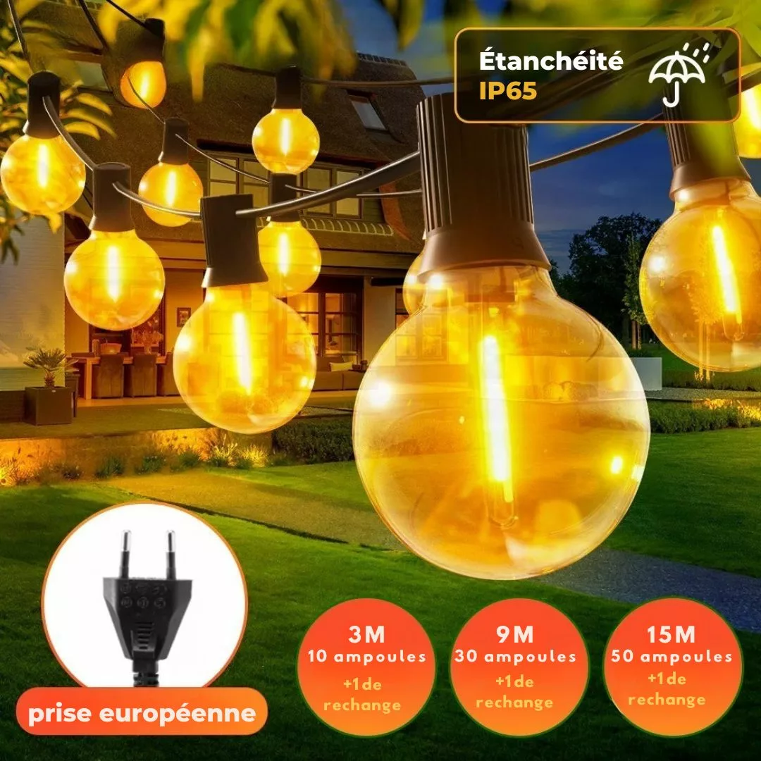 Guirlande ampoules géantes extérieur ambiance festive – Illuminez vos soirées avec style et chaleur