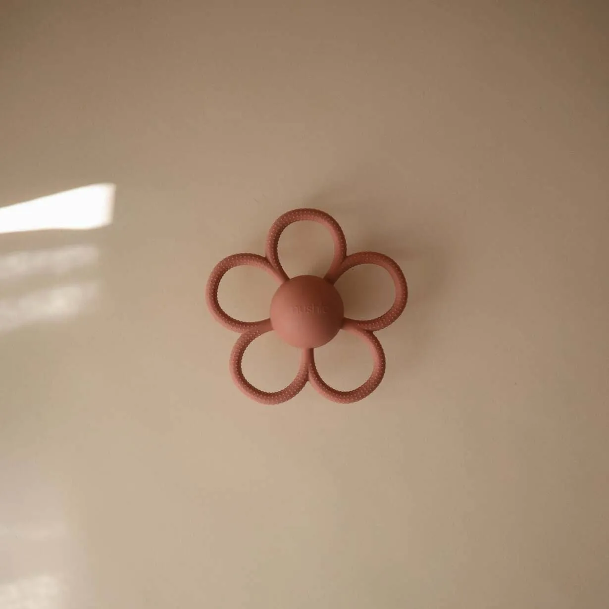 Ce joli hochet de dentition Fleur de Mushie est idéal à la fois pour apaiser les gencives et amuser bébé !