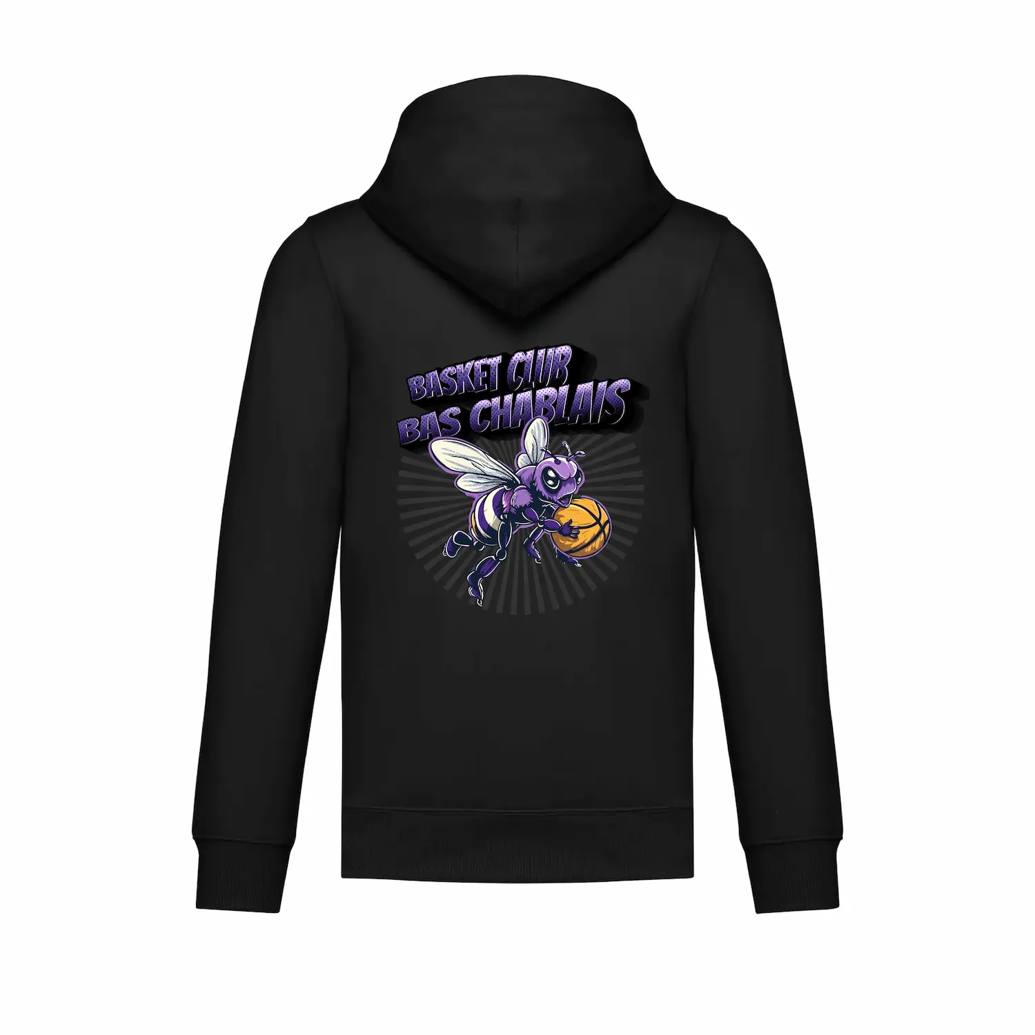 Le hoodie zippé Bee du Basket Club Bas Chablais est l’alliance parfaite entre style, confort et durabilité. Fabriqué à partir de 50% de coton ring-spun et 50% de polyester recyclé post-consumer, il offre une sensation douce et agréable au toucher tout en respectant l’environnement.