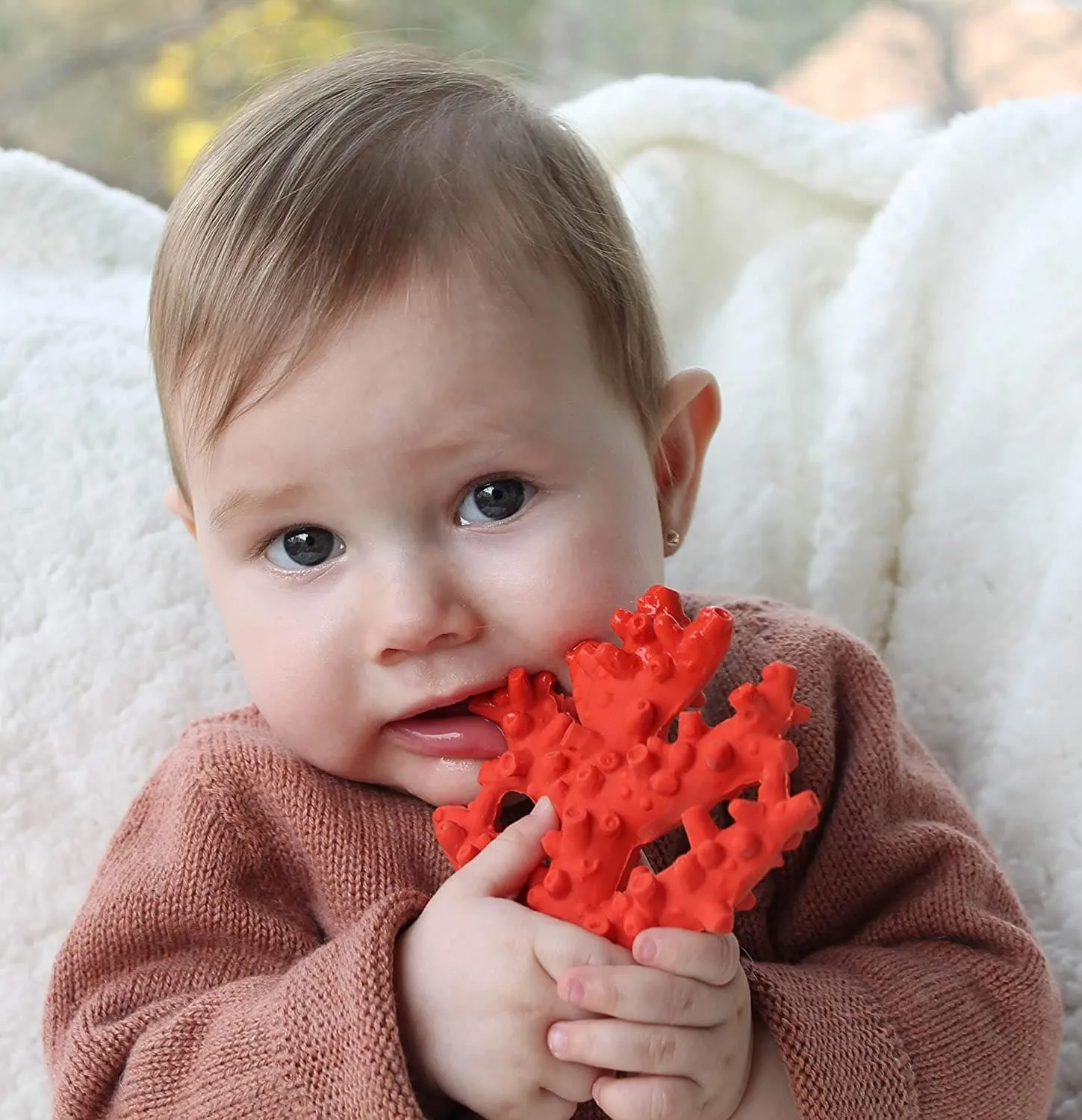 – jouet de dentition corail en caoutchouc naturel 100% biologique issu de la sève de l’hévéa