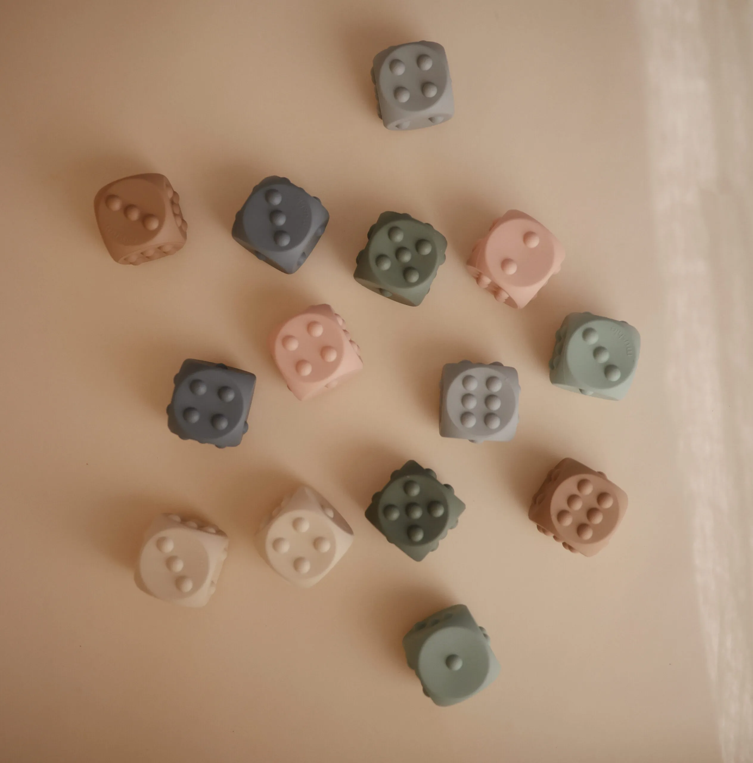 Conçu pour les petites mains de bébé, le jouet Pop it en forme de dés de Mushie encourage l’exploration sensorielle et le développement de la motricité fine grâce à son design simple et ses couleurs douces.