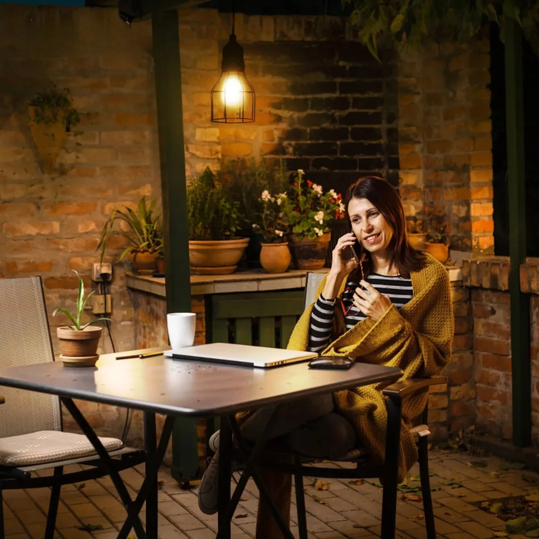Grâce à son système solaire innovant, cette lanterne se recharge le jour et offre une lumière douce et chaleureuse dès la nuit tombée.