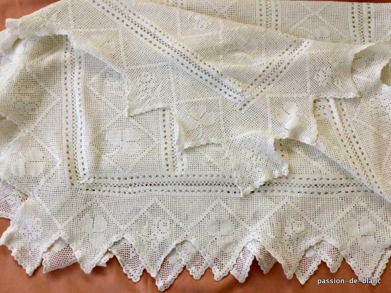 très décorative en dentelle au crochet entièrement confectionnée à la main avec un fil de coton fin mercerisé et bien blanc.