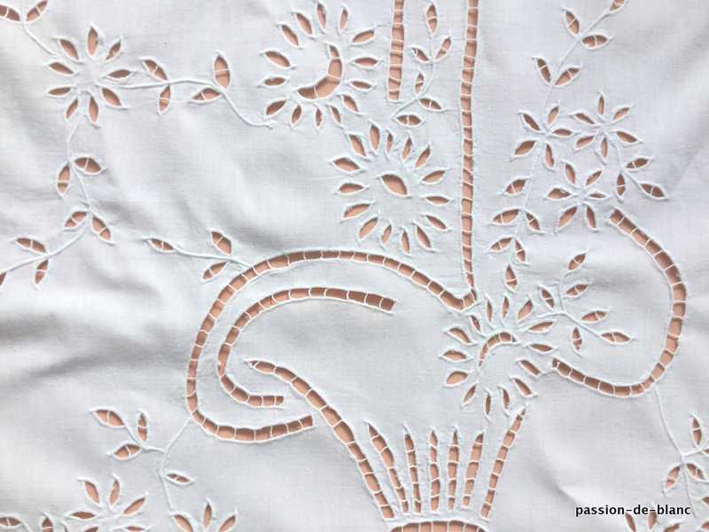 jadis cet ouvrage était un dessus de lit mais il peut être transformé en une jolie tenture, les belles broderies sont réalisées à la