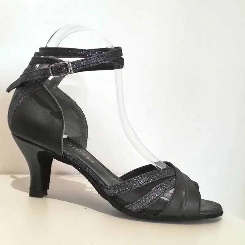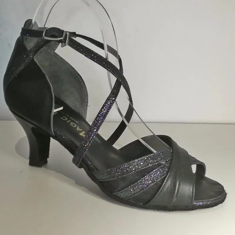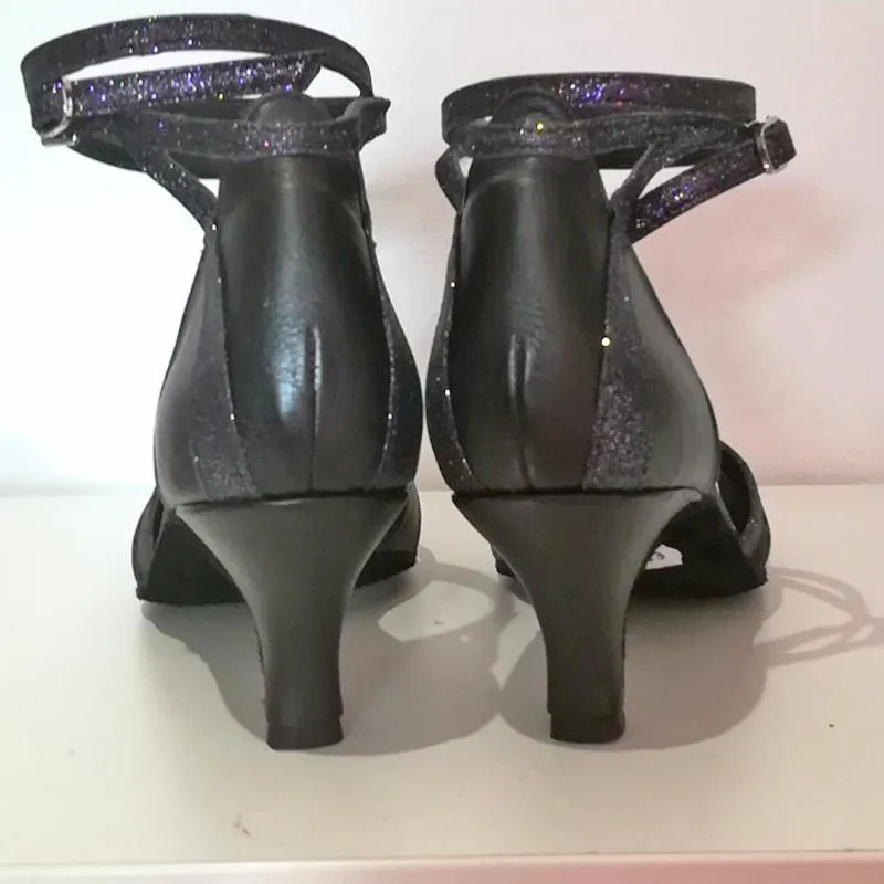 • Chaussures de danse réalisées en cuir noir et paillettes nuit