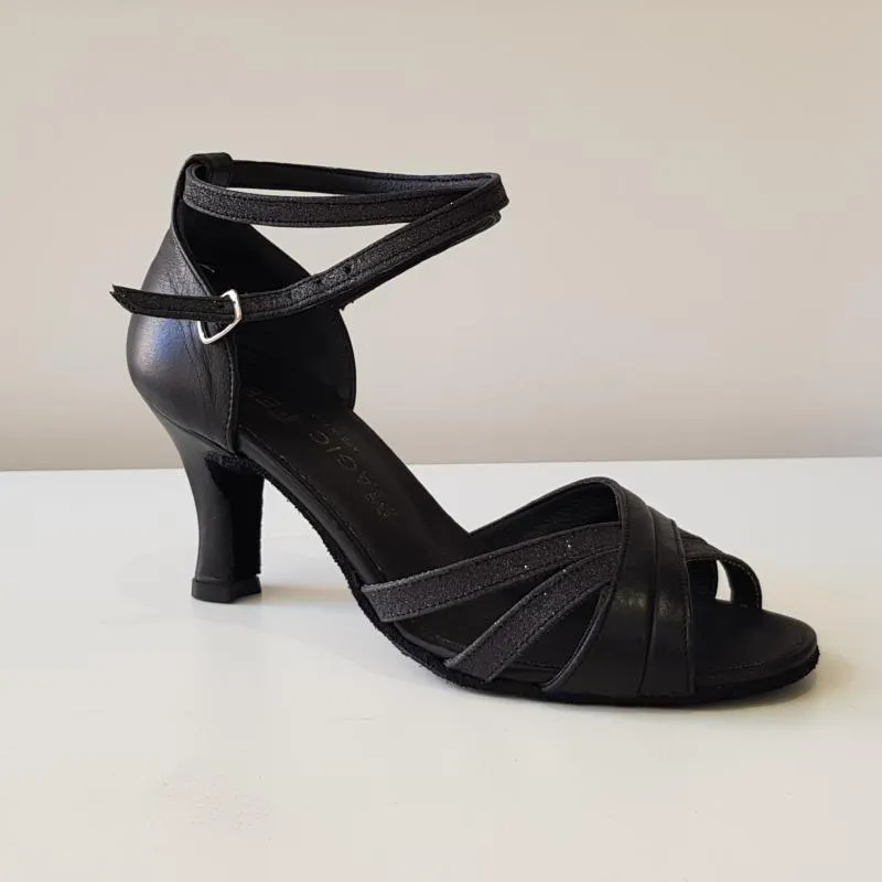 Chaussures de danse réalisées en cuir noir et paillettes multicolores