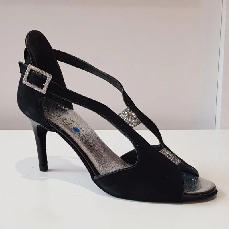 • Chaussures de danse réalisées en daim noir, avec paillettes grises