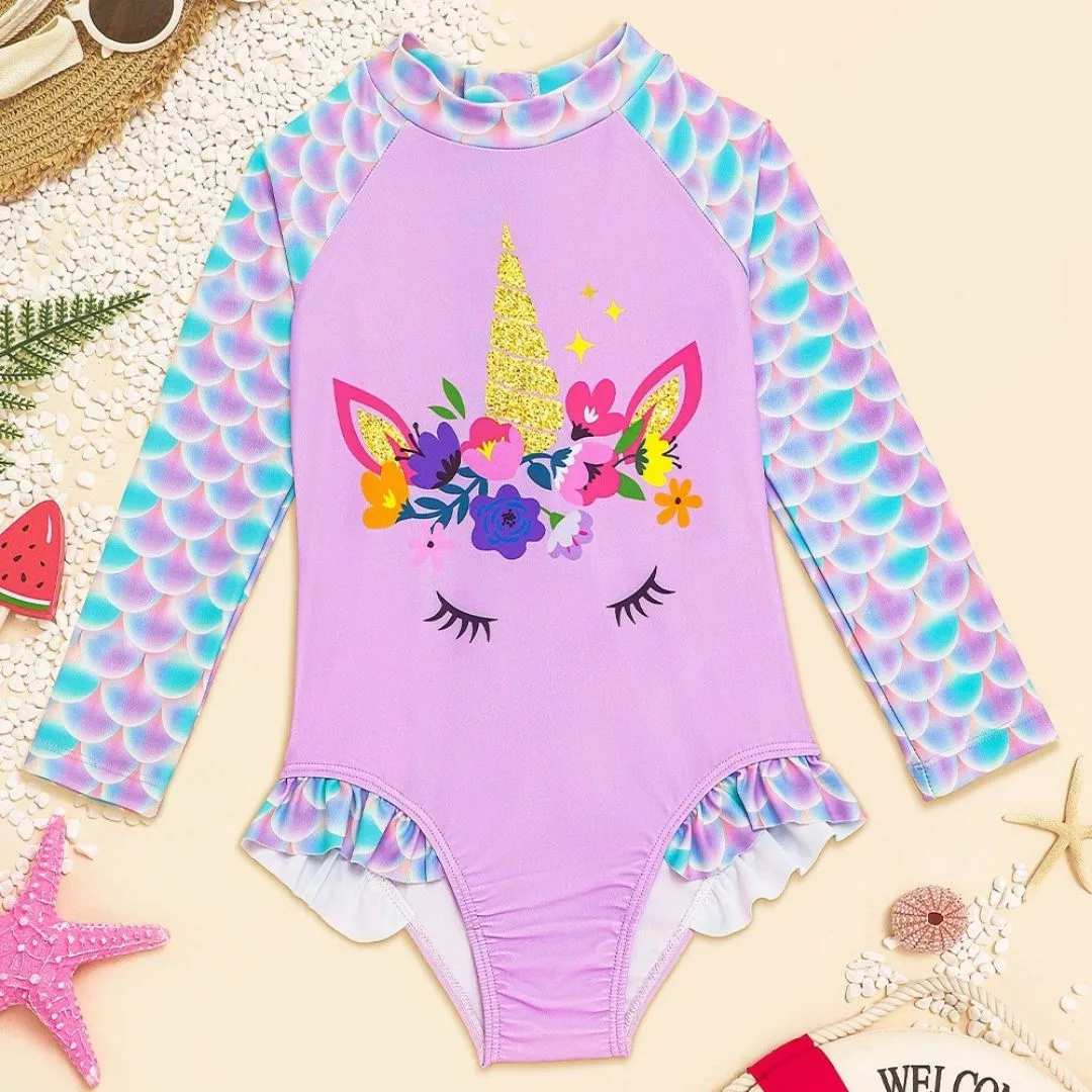 Maillot de bain licorne à manches longues – Plongée féérique et protection élégante