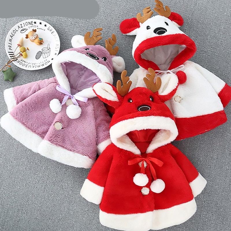 Partez à la découverte du manteau de Noël bébé. Un manteau qui ravira les enfants et qui les gardera bien au chaud durant les longues journées d’hiver. Sa fourrure et sa peluche le rendent particulièrement douillet et agréable à porter. N’oublions pas sa capuche en forme de tête de renne et ses deux cornes qui dépassent pour un look unique et mignon !