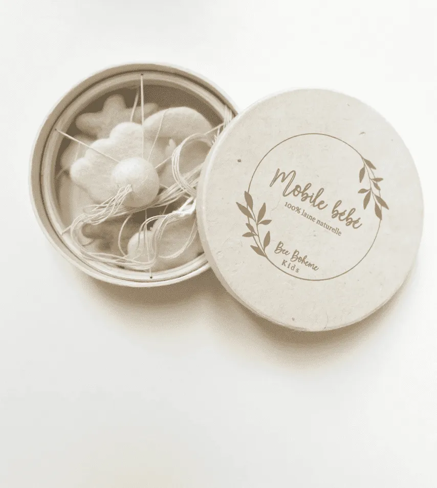 – Composition du mobile bébé : laine feutré et bois