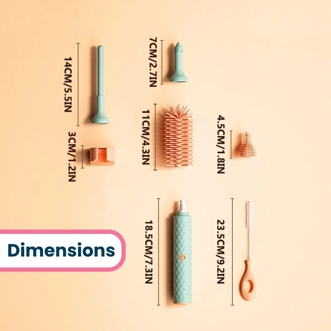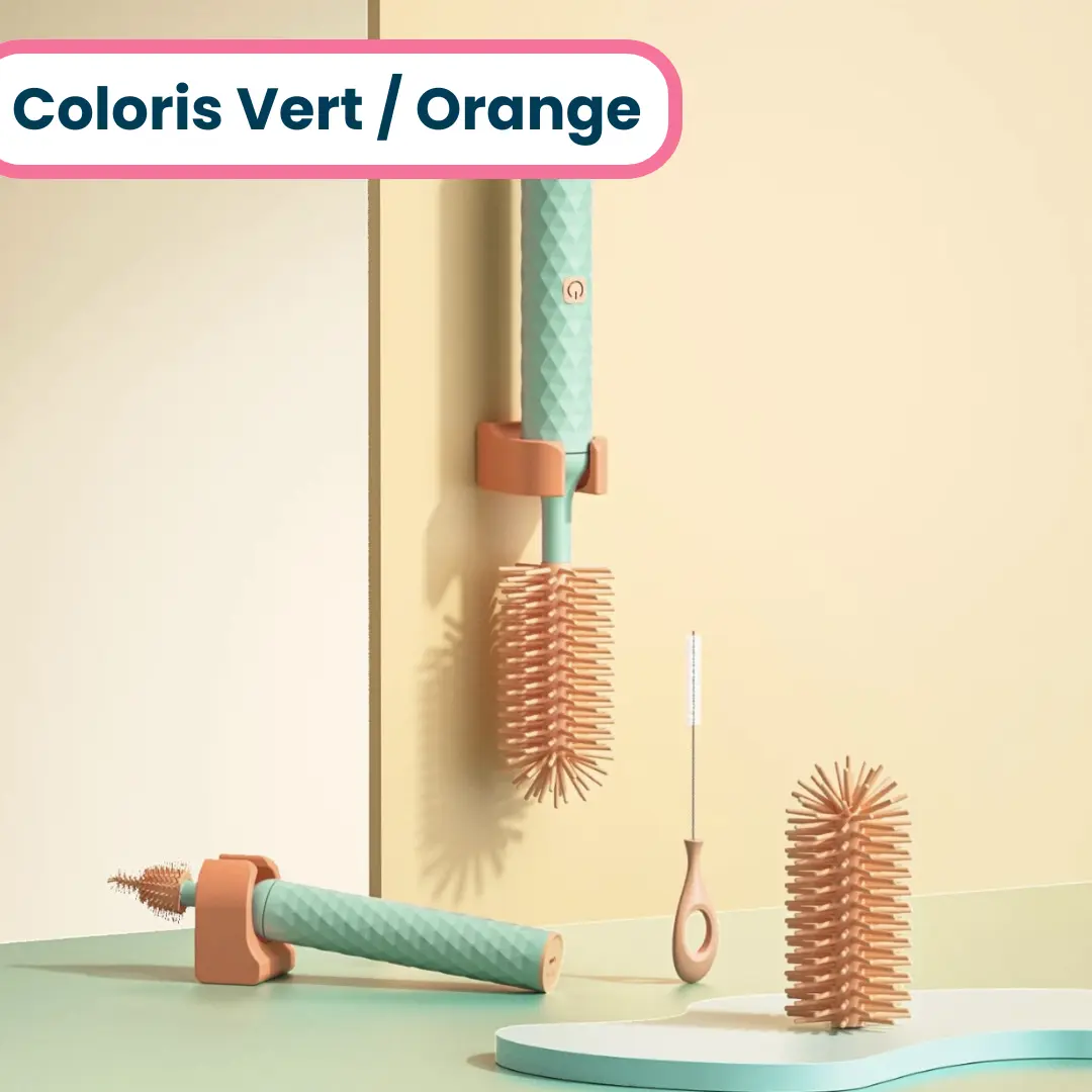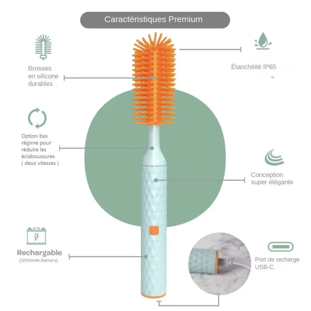 • Les brosses à biberons électriques polyvalentes s’adaptent à différentes formes et tailles pour un nettoyage en profondeur.