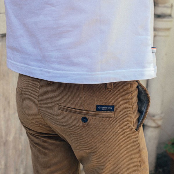 Sa forme dites « conique » ou « tapered » à l’international ravira ces messieurs aux cuisses musclées. Le bas du pantalon est, quant à lui, légèrement resserré.