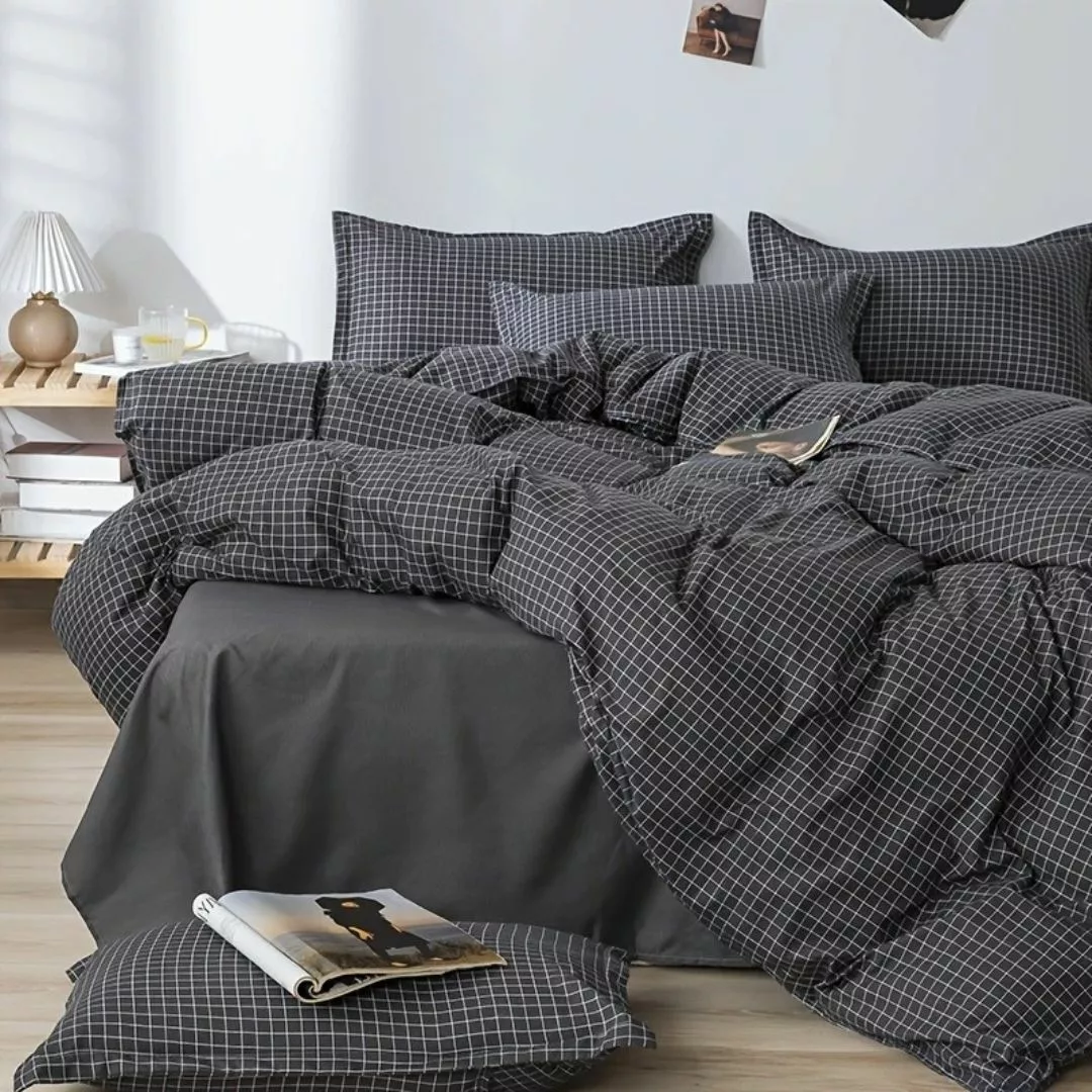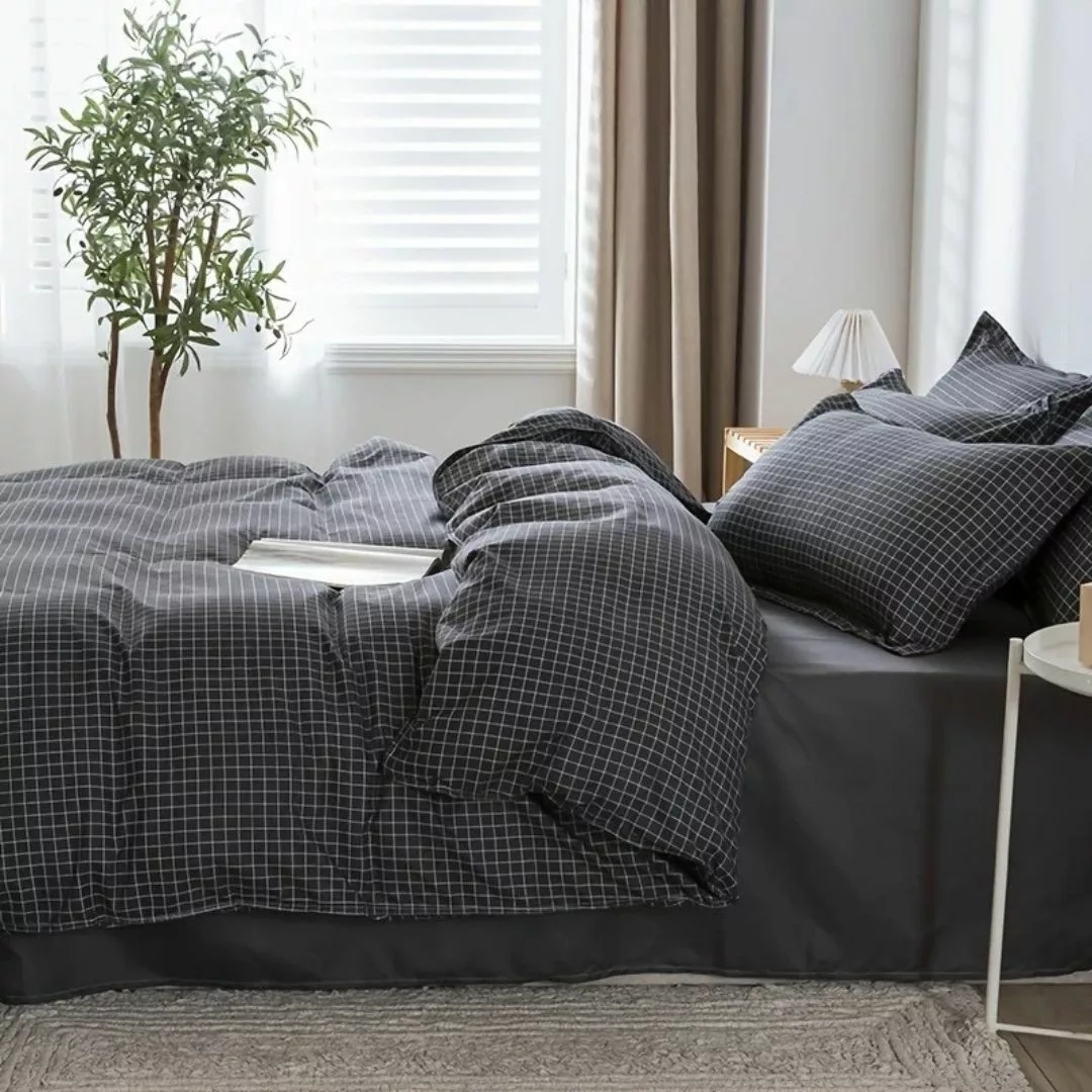 Parure de lit carreaux noirs minimalistes – Élégance et Simplicité réunies pour une Chambre Moderne