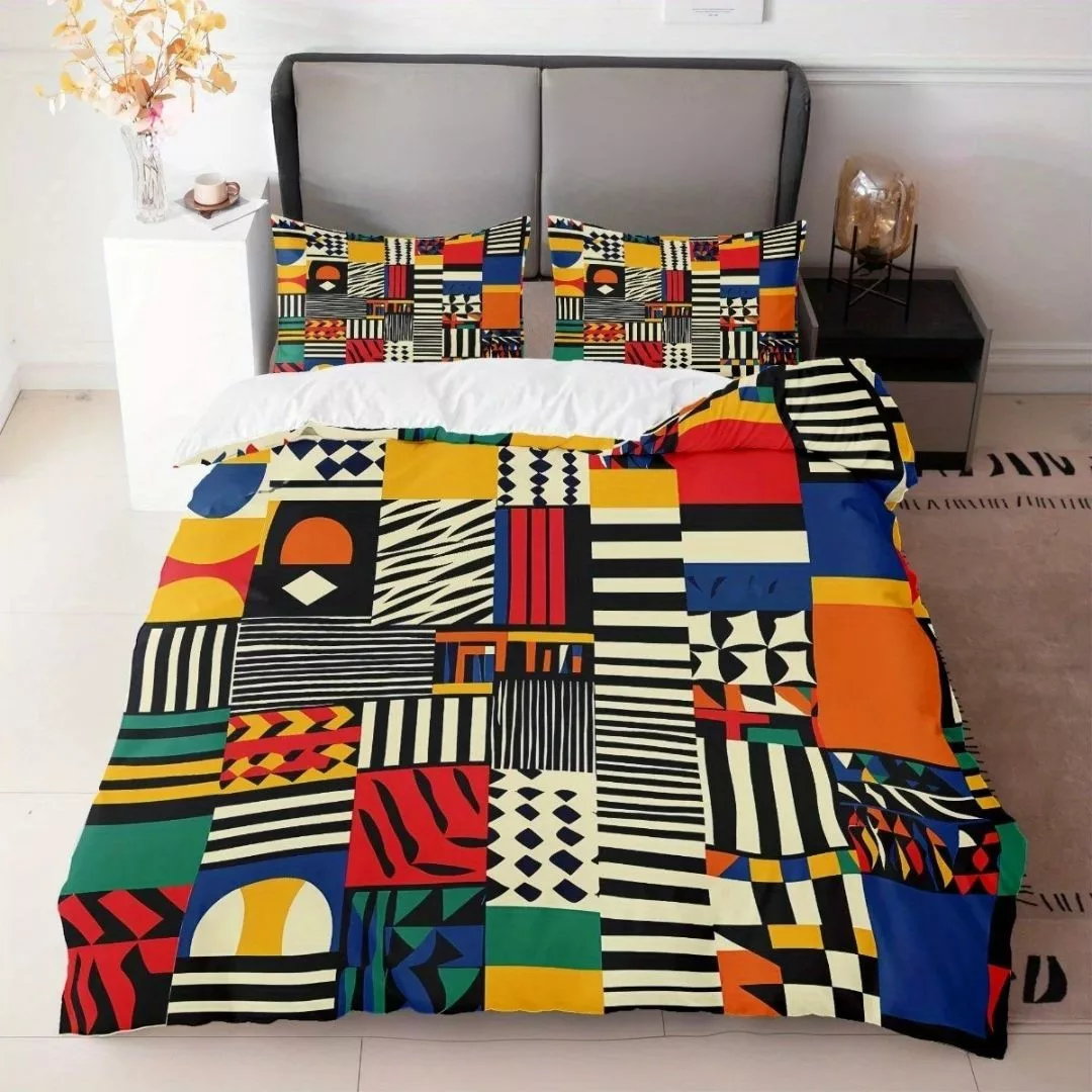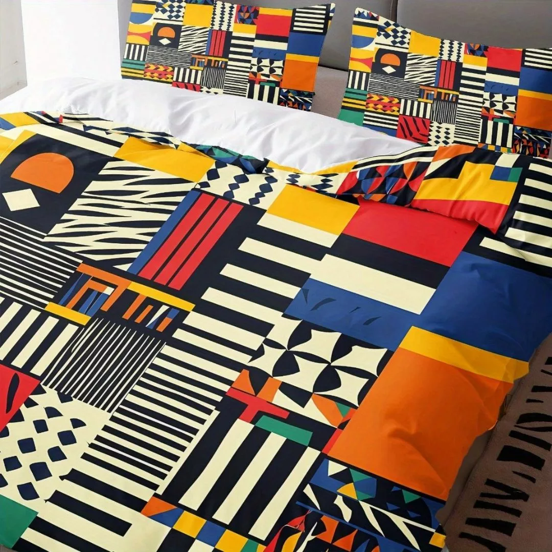 Parure de lit patchwork géométrique pop – Une explosion de couleur et de design moderne