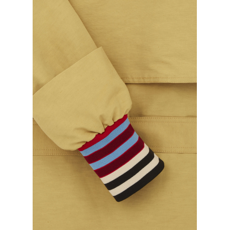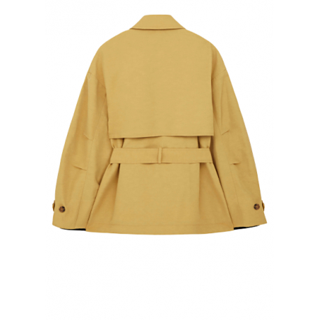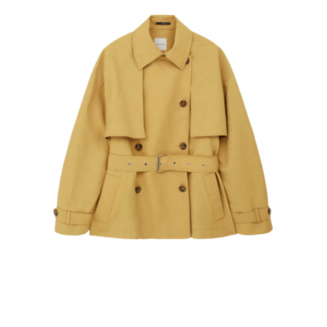 Voici le Trench court parfait de la marque Paul Smith. Il est en coton et en lin, de couleur jaune et est composé d’une ceinture. Parfait pour la mi-saison.
