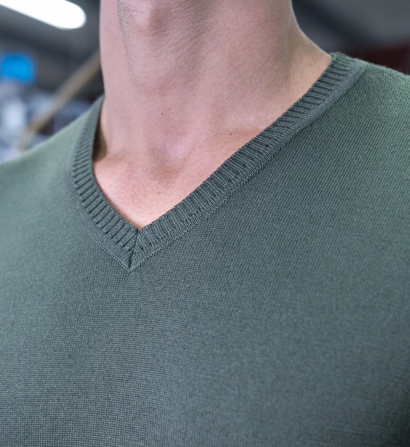Pull Royal Mer uni col V Kaki – CHARLES