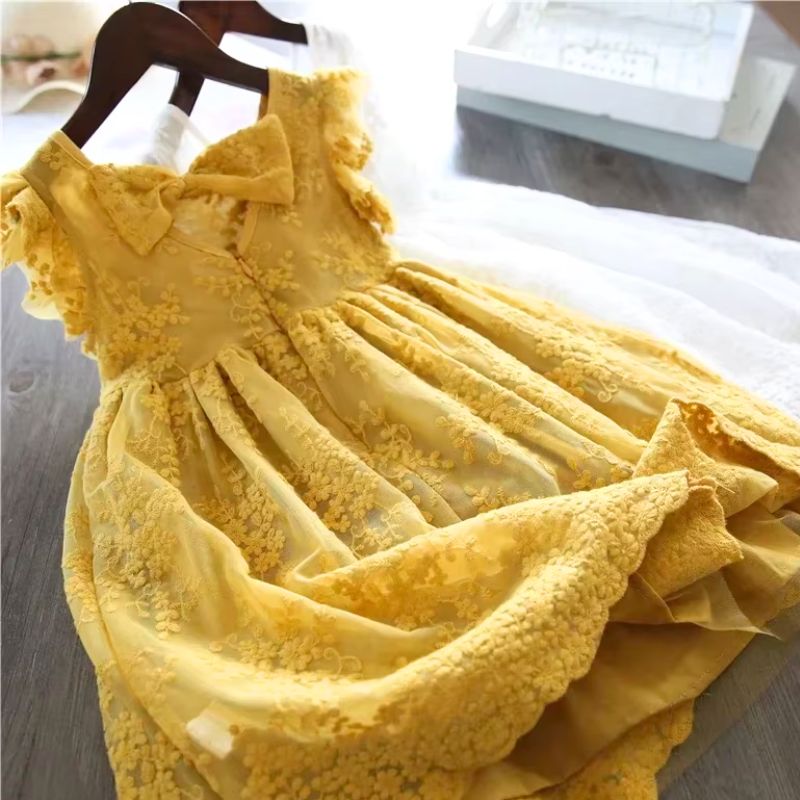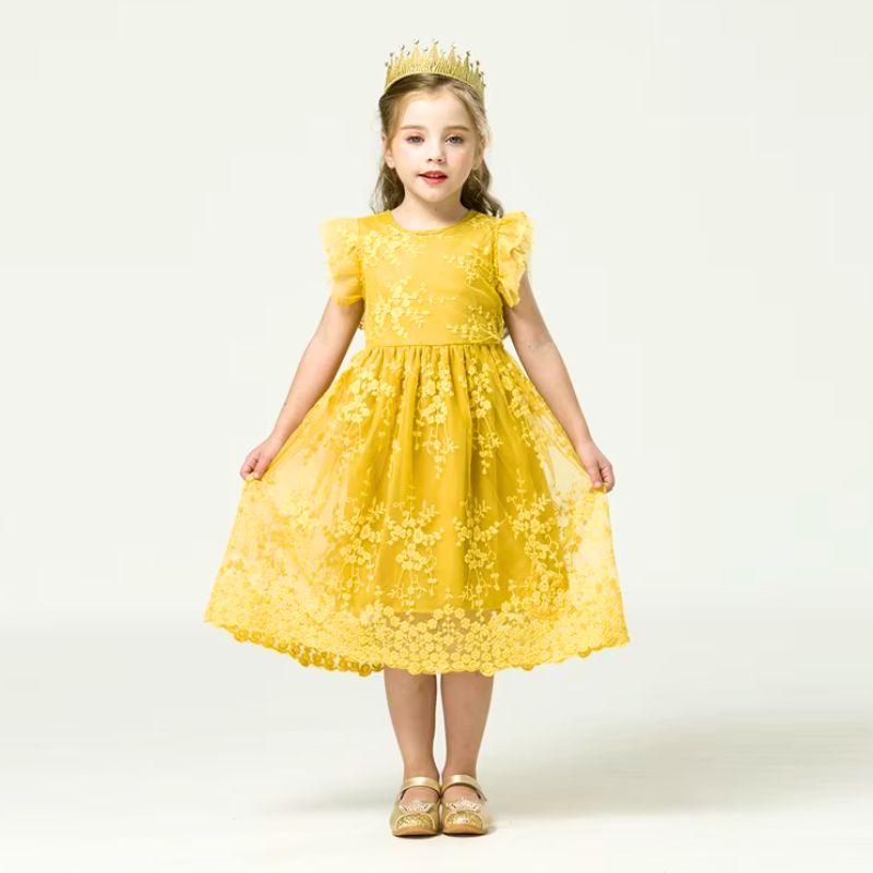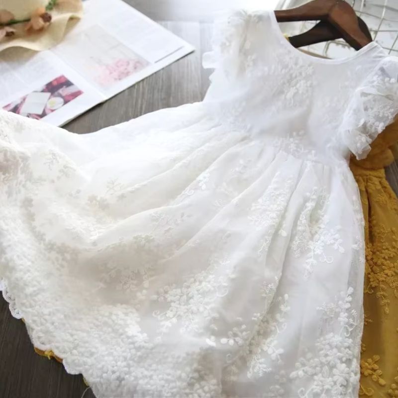 Découvrez notre robe en dentelle raffinée, parfaite pour les petites filles de 3 à 8 ans. Idéale pour les mariages, cérémonies de baptême, et en tant que demoiselle d’honneur, cette robe allie élégance et confort. Disponible en deux coloris enchanteurs – blanc pur et jaune doré – elle est confectionnée dans une dentelle brodée délicate qui ajoute une touche de sophistication à chaque mouvement.