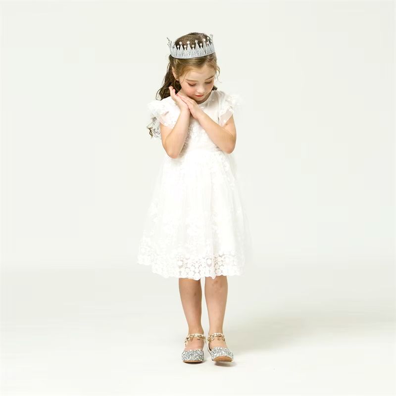 La robe se distingue par ses manches courtes ornées de volants en dentelle, offrant un style chic et romantique. La coupe fluide et la doublure douce assurent un confort optimal pour que votre enfant se sente à l’aise lors des grandes occasions. Avec des détails soigneusement travaillés, chaque broderie met en valeur la qualité artisanale de ce vêtement exceptionnel.