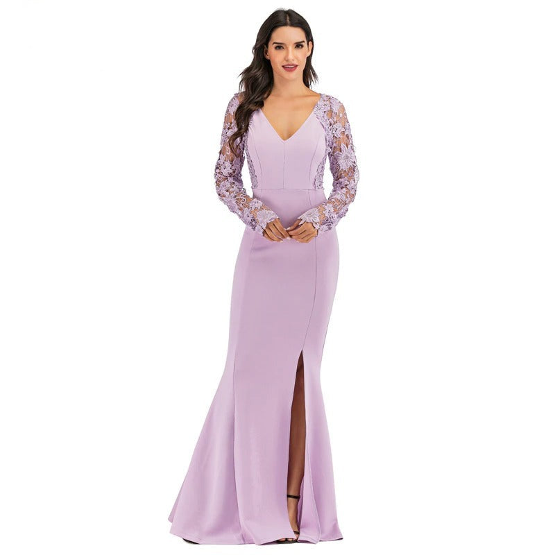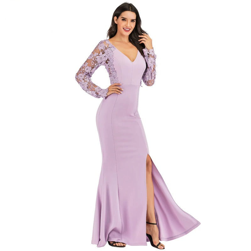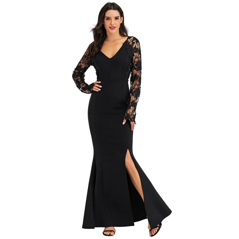 La robe de soirée en dentelle se distingue par son dos nu subtilement révélé, mettant en valeur votre silhouette. Les manches longues apportent une note de mystère et un look rétro chic irrésistible. Sa transparence élégante, grâce à la dentelle, est un clin d’œil discret à la sensualité.